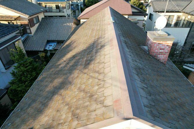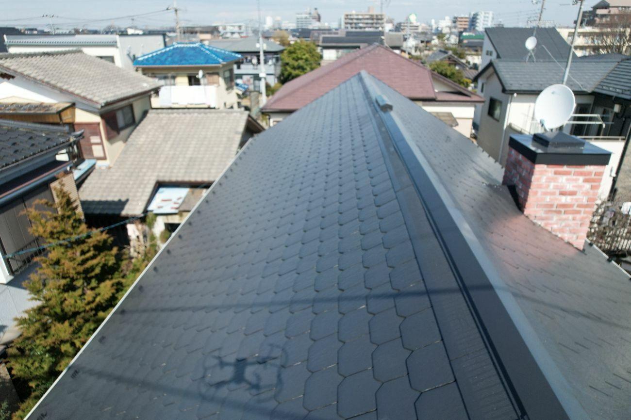 埼玉県吉川市M様邸屋根塗装工事が完了しました。 仮設足場 屋根・外壁洗浄 屋根塗装 下塗り・中塗り・上塗り 日本ペイント サーモアイsi 94m2 軒天塗装 破風板・雨樋・飾り窓塗装