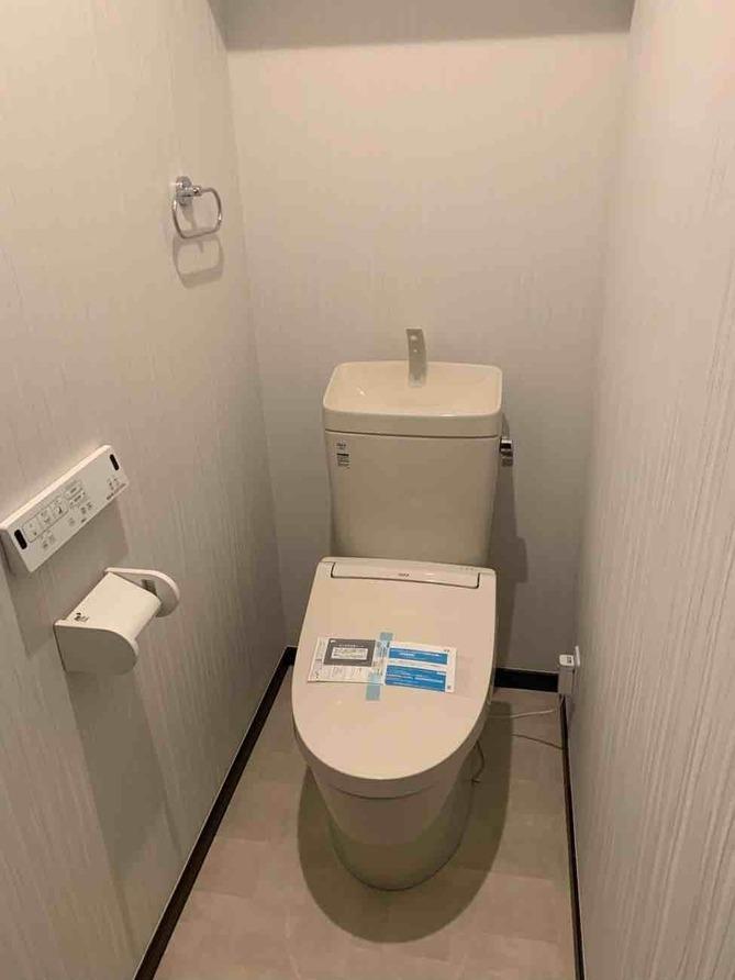 埼玉県吉川市I様邸トイレ交換移設工事が完了しました。 LIXILアメージュZ 色 オフホワイト 便器・手洗付タンク ウオッシュレット便座 壁リモコン付 ハイパーキラミック 手動ハンドル フランジ 排水接続部材 棚付2連紙巻 タオル掛け 交換基本施工
