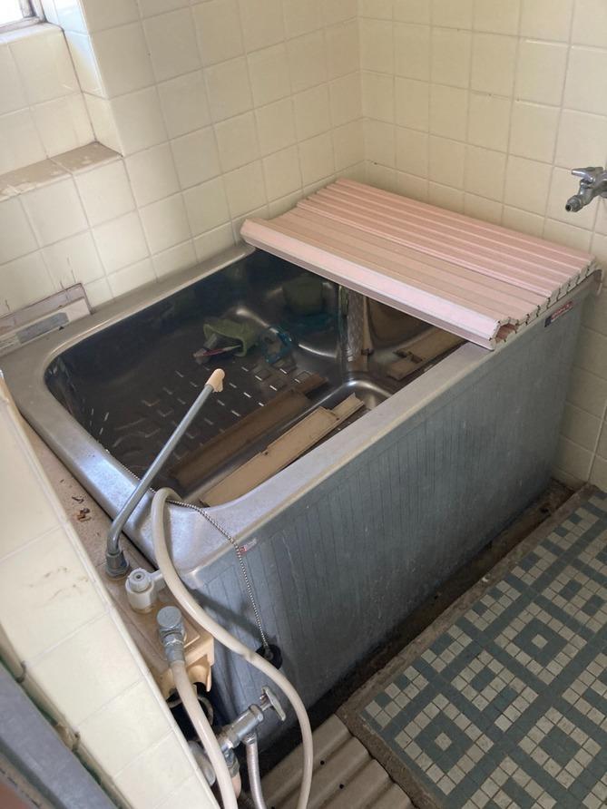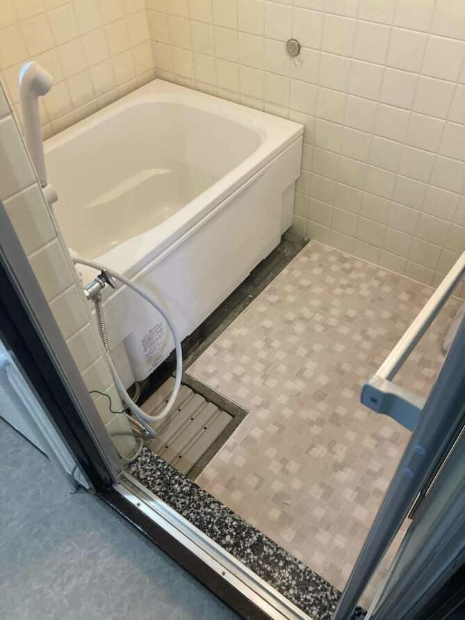 埼玉県三郷市N様邸団地浴槽交換工事が完了しました。 浴槽交換 既存浴槽撤去 新規浴槽取付 床シート貼り 浴室シート 貼り付け施工