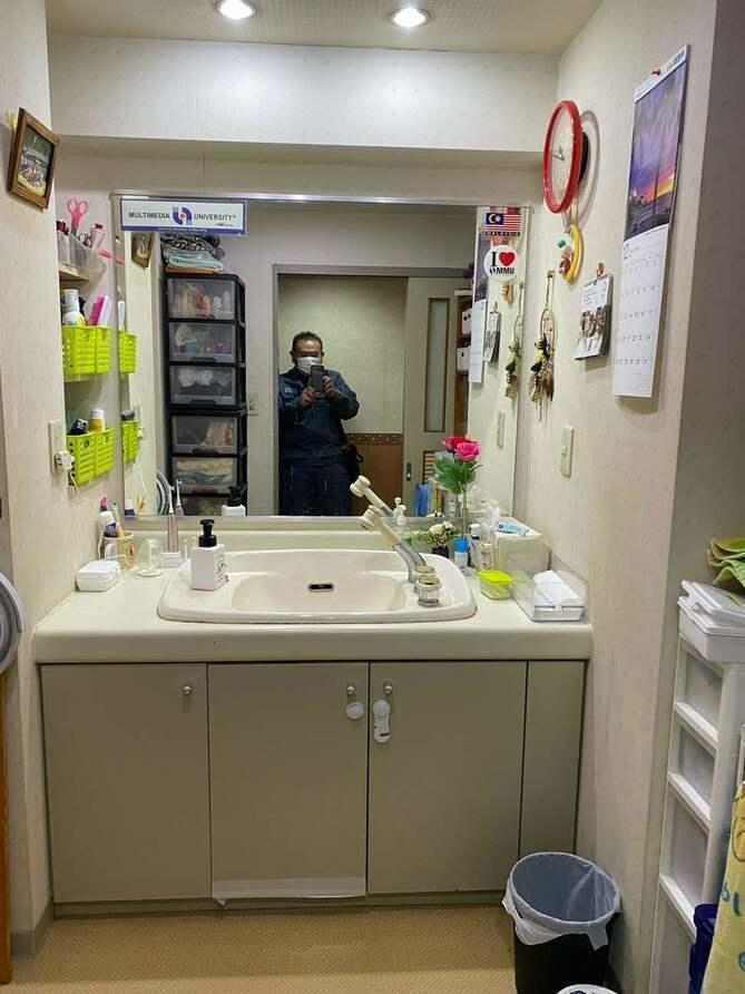 埼玉県三郷市O様マンション洗面化粧台交換工事が完了しました。 TOTO洗面化粧台 サクア 止水栓 交換工事