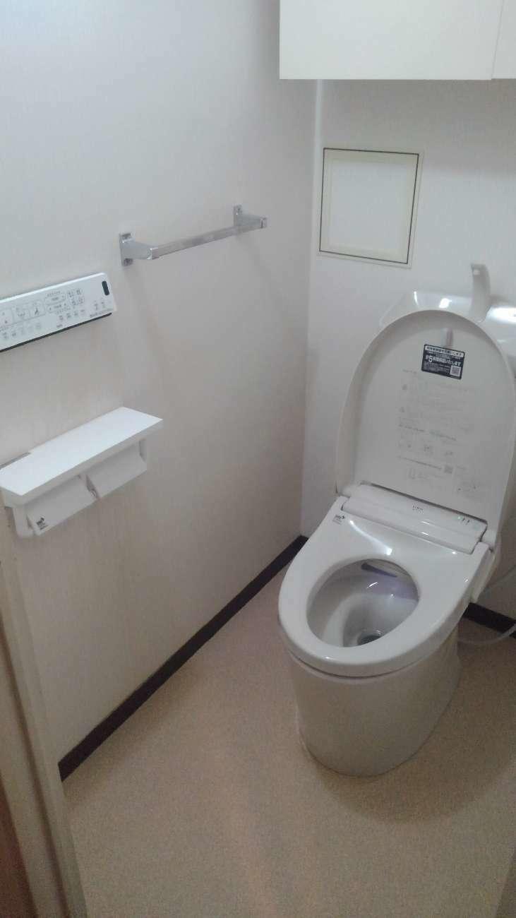 埼玉県三郷市N様邸さつき平マンショントイレ交換工事が完了しました。 LIXILアメージュZ 100年クリーン 色 BN8 アクアセラミック 便器 手洗付タンク ウオッシュレット便座PASSO 自動フタ自動洗浄 棚付2連紙巻 タオル掛け 交換基本施工 床 塩ビクッション 天壁クロス ソフト巾木 .