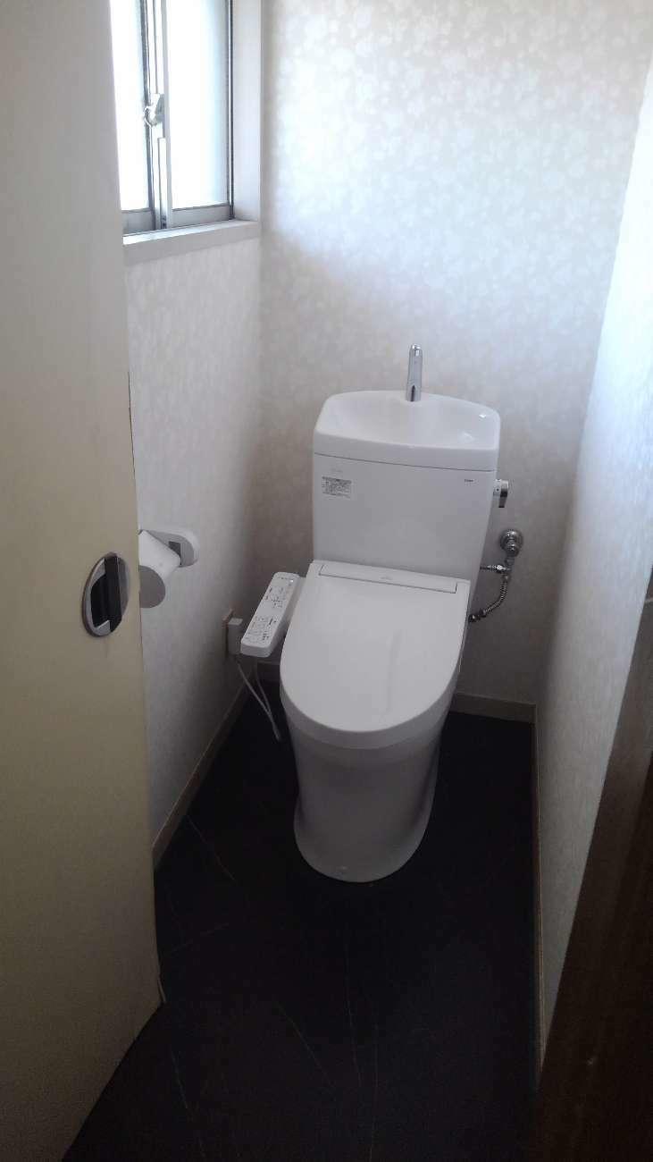 埼玉県吉川市S様邸トイレ交換工事が完了しました。 TOTO ピュアレストQR ウオシュレットSB 紙巻器 タオル掛け 解体~配管~接続