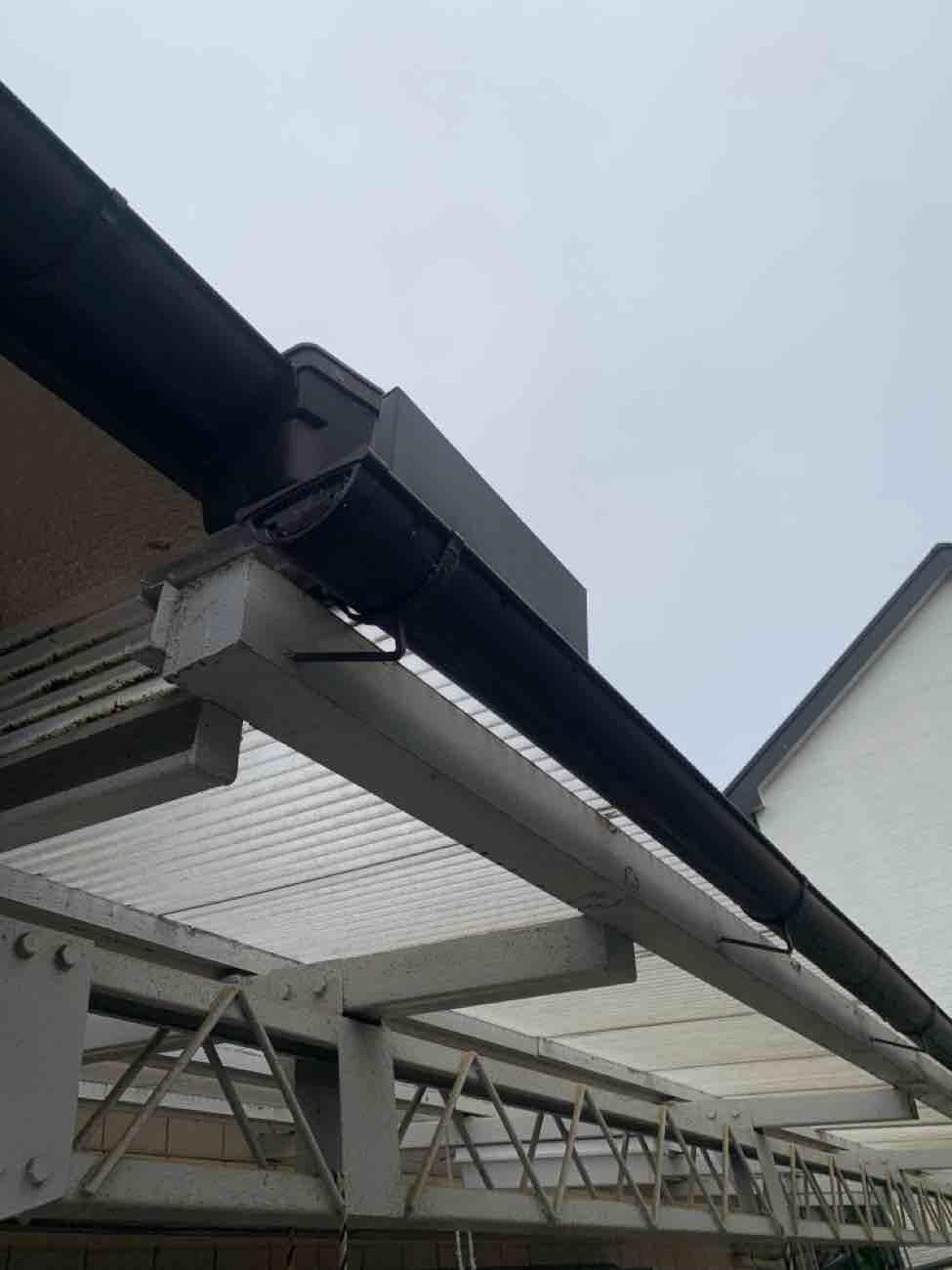 お客様は雨が降ると軒樋から水が溢れるとのことでお悩みでした。ある程度の雨が降ると雨水が雨樋からあふれておりました。