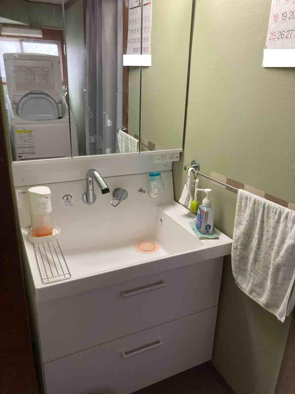 埼玉県三郷市Y様邸洗面化粧台交換工事が完了しました。 LIXIL ピアラ W600 化粧台本体 ミラーキャビ 3面鏡LED 交換施工
