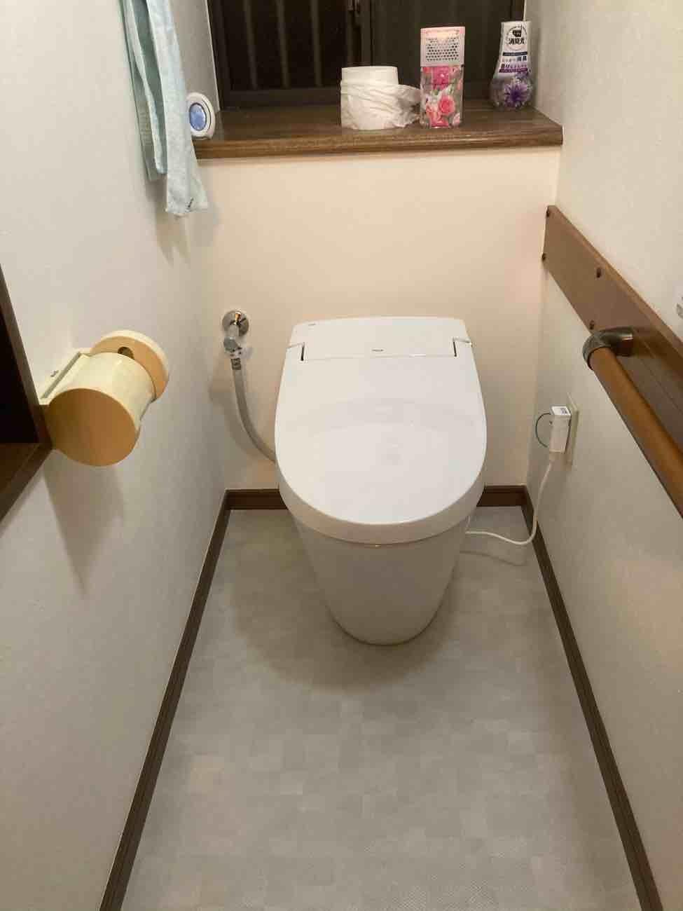 埼玉県吉川市O様邸トイレ交換工事が完了しました。 LIXILサティスS 便器 1台 機能部 壁リモコン 1台 フランジ 排水接続部材 交換基本施工