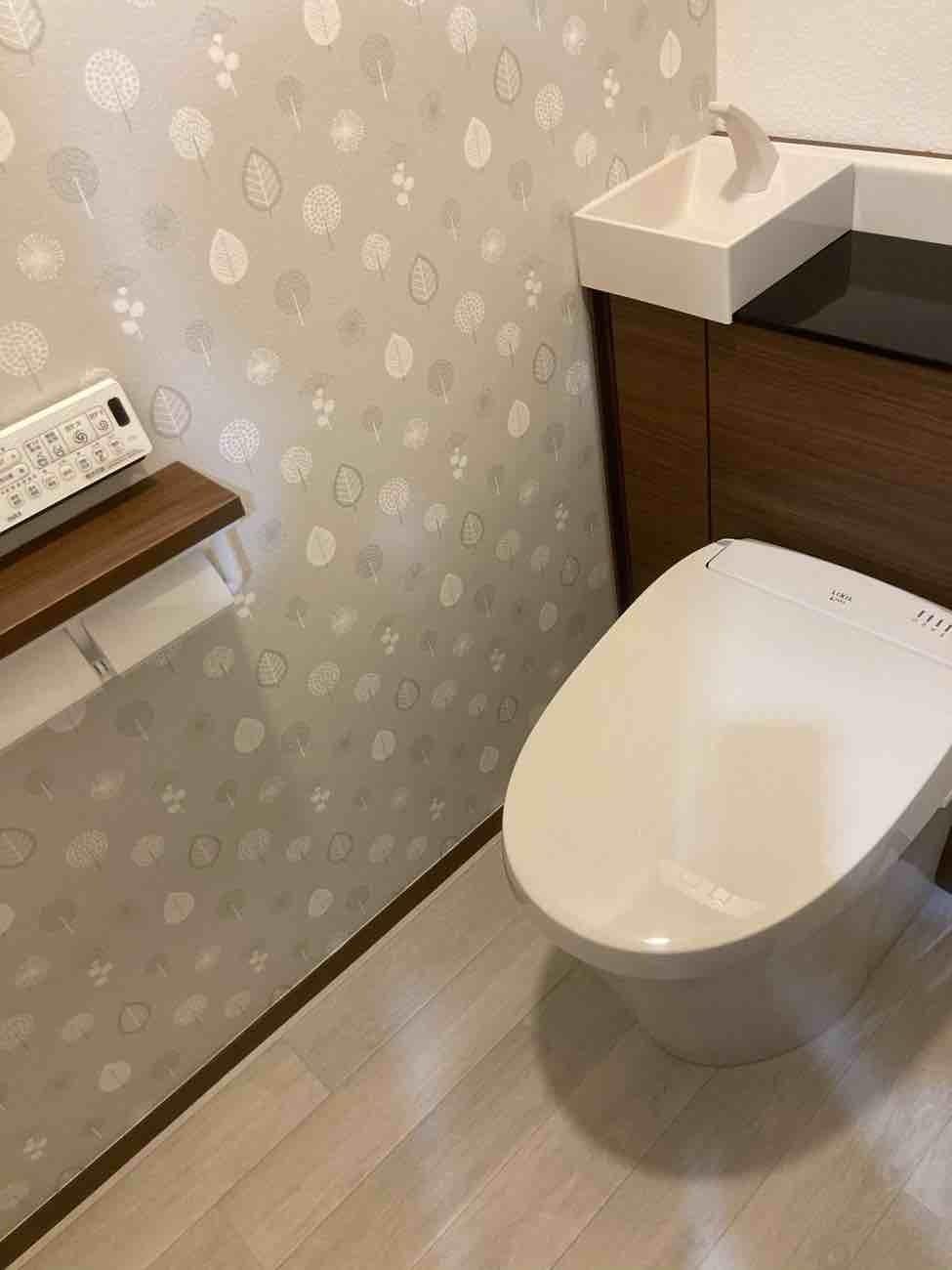 埼玉県三郷市I様邸トイレ交換工事が完了しました。 LIXILリフォレI型 縦排水管躱し 排水ベント管 フランジ 排水接続部材 棚付2連紙巻 タオル掛け 交換基本施工