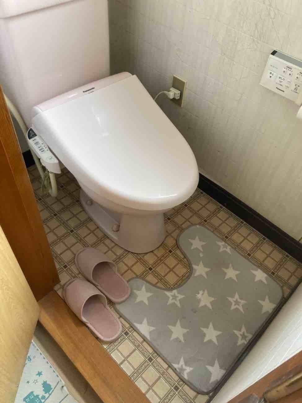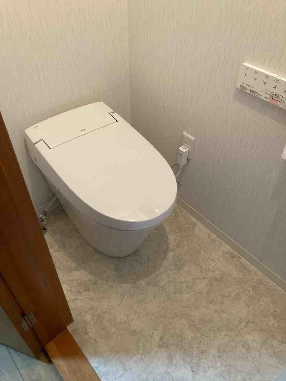 埼玉県吉川市K様邸トイレ交換工事が完了しました。リクシル LIXILサティスS 便器 機能部 壁リモコン フランジ 排水接続部材 棚付2連紙巻 交換基本施工 給排水管交換 床壁開口部復旧 大工作業