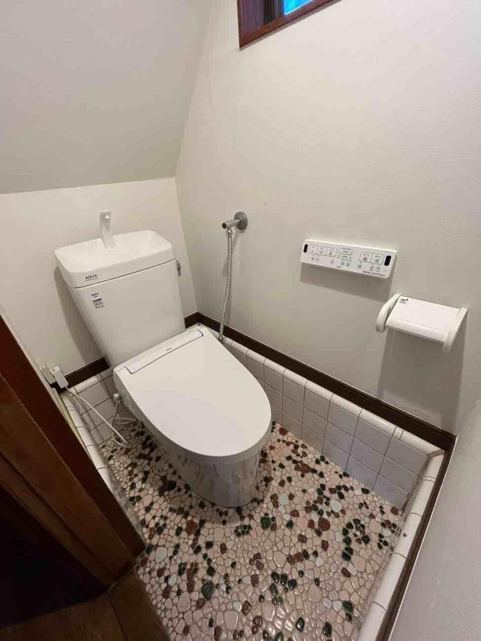 埼玉県三郷市M様邸トイレ交換工事が完了しました。 LIXILアメージュZ 便器(リトイレ) タンク ウオッシュレット 紙巻き器 基本交換施工 内装工事 クロス貼り替え 建具クロス貼り 作業 見切り取付 養生