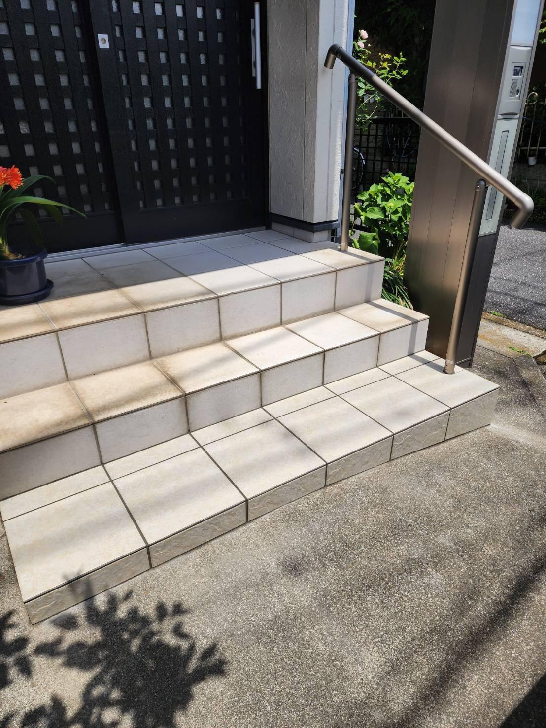 埼玉県三郷市K様邸エントランス玄関入口段差手摺設置工事です。 最近はお客様も年齢を重ねてこられ階段などが心配になってきます。 今回はK様邸のエントランス玄関入り口の段差に手摺を設置させていただきました。転倒は危ないのでやはり手すりはあった方がよいです。いつまでもお元気でいていただければと思います。