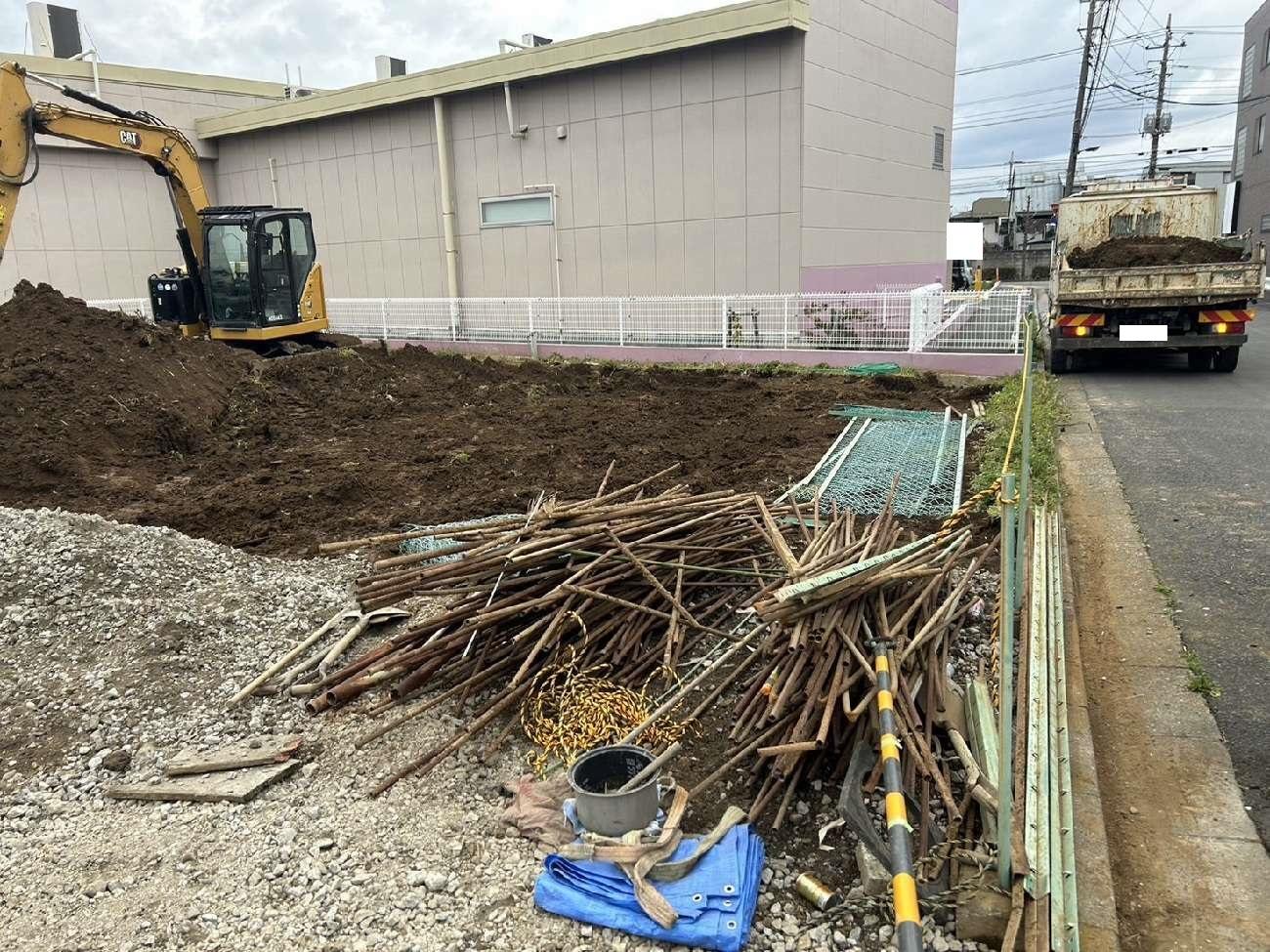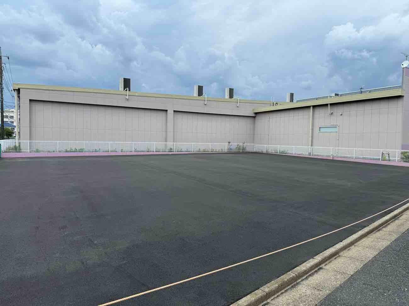 東京都足立区Y様土地駐車場造成アスファルト工事が完了しました。 ネットフェンス解体 独立基礎ブロック含む 47.5m 運搬処分 土鋤取り 不陸調整 転圧 現状より-200㎜ 500㎡ 発生残土運搬処分 120立米 路盤調整 RC-40敷均60立米 アスファルト舗装 開粒度アスコン500㎡ 重機回送 安全対策