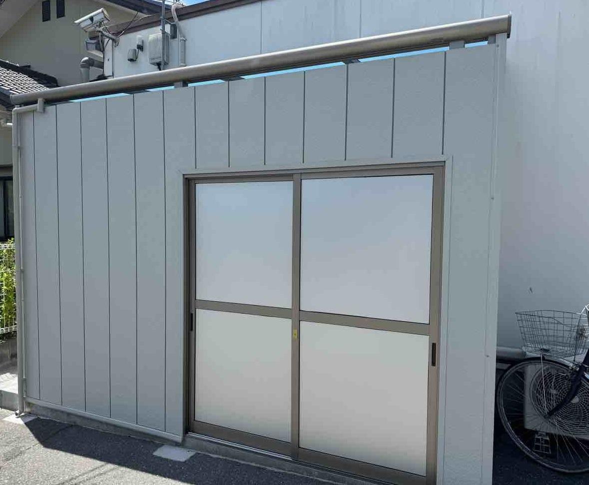 埼玉県八潮市Y様アルミテラス物置設置工事が完了しました。 三協アルミテラス Fタイプ 5m×1200 1間×2間×4尺 ロング柱 色UC(ロング柱) パネル 熱線遮断 入口 3尺ドア アルポリック 6尺引き違いアルポリック サイデイング グレーチング設置 テラス連棟工事 ドア取付 引き違い取付 ブロック工事
