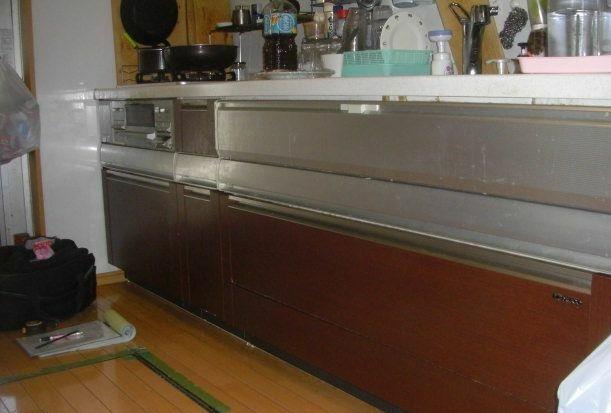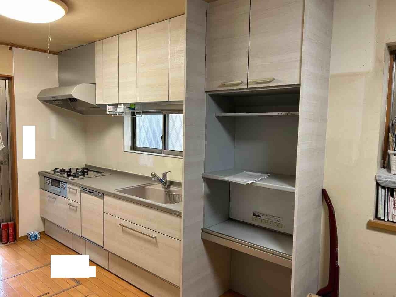 埼玉県三郷市S様邸キッチン交換工事が完了しました。 キッチン 食器棚 トクラスBb W2550 人大カウンター キッチン組立 パネル設置 食器棚組立 搬入 解体 配管 木工事
