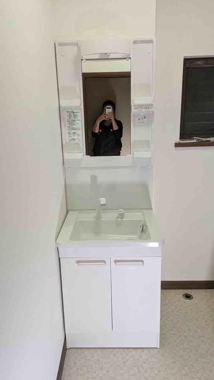 埼玉県三郷市A様邸洗面化粧台交換工事が完了しました。 TOTO洗面台本体 Vシリーズ600 止水栓 LED一面鏡 交換施工