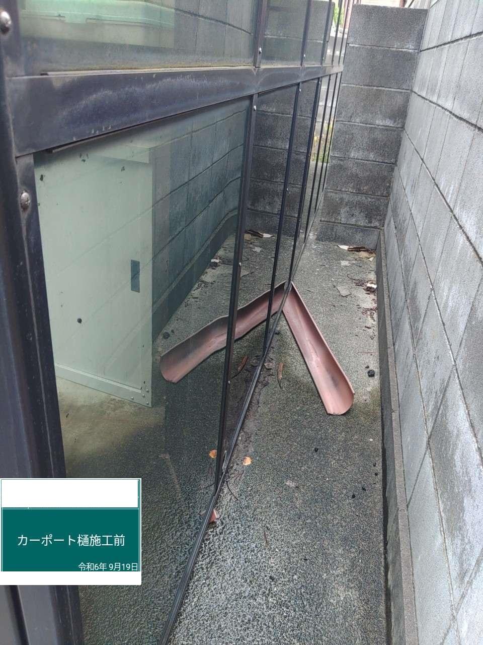 埼玉県三郷市Y様カーポート補修工事が完了しました。 カーポート竪樋が長年の劣化や強風によって取れてしまい。また水が溜まってしまう場所ができていたので対応するために新規雨樋を造作しました。