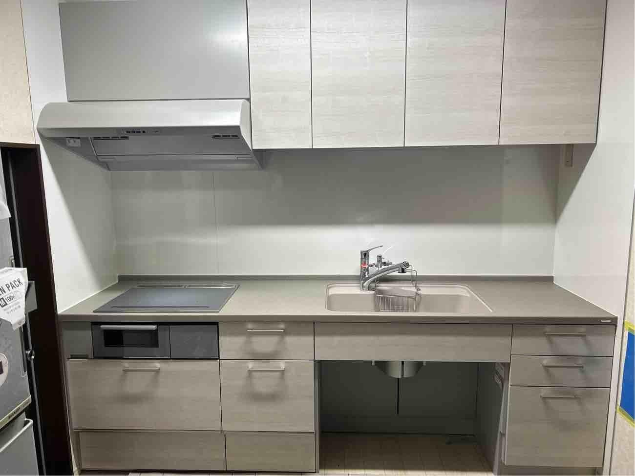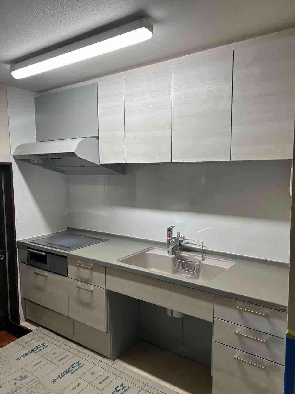 埼玉県三郷市M様邸キッチン交換工事が完了しました。 キッチン トクラスBb W2550 人大カウンター KVK製水栓 食洗器分岐金具 キッチン組立 パネル既存 搬入 解体 配管 木工事 勝手口土間埋め 踏み台か完全隠し IHコンロ配線 200V