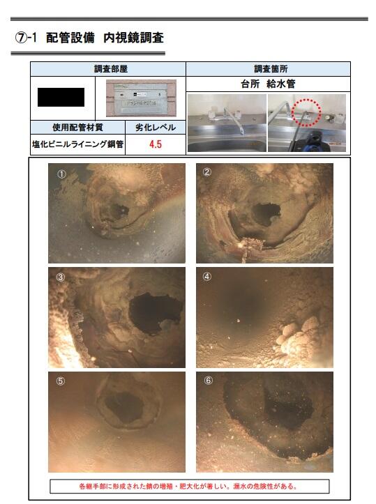 給排水管の状態はあまり良い状態ではありません。年数が経過していて赤さびがでるなど入居者様から連絡があった場合は要注意です。空室があればすぐにできますし、満室であっても入居者様に確認して対応しますのでご連絡ください。劣化が進んで配管の交換をすると費用がかなりかかってしまいます。ご提案しますのでご連絡ください。