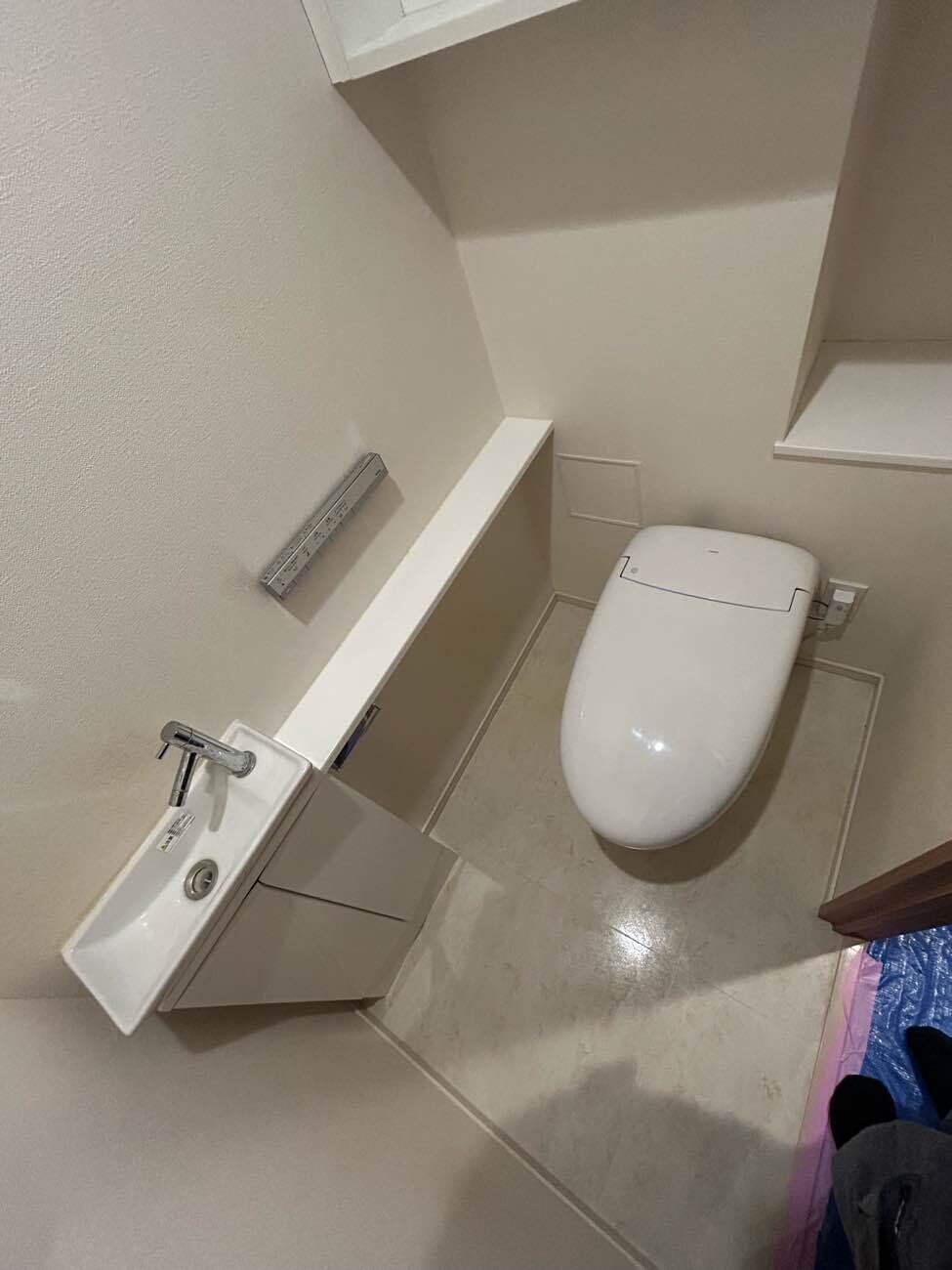 埼玉県三郷市N様邸トイレ交換工事が完了しました。 TOTO製 ネオレストRS1 交換施工 既存フロアタイルはがし 新規フロアタイル貼り ソフト巾木取付