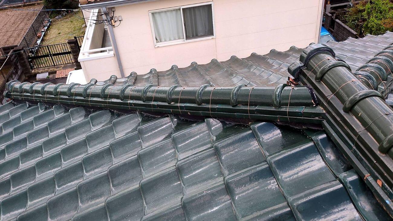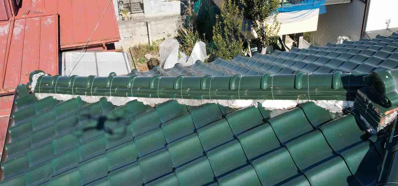 埼玉県北葛飾郡松伏町K様邸屋根瓦漆喰工事 日本瓦棟取り直し工事 隅棟2箇所 大棟 9m 廃材処理