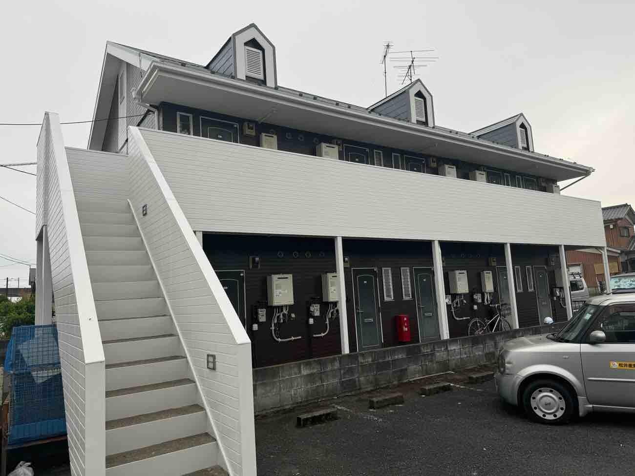 埼玉県三郷市のM様賃貸アパートの外壁・屋根塗装工事が完了いたしました。SK化研 プレミアムシリコン