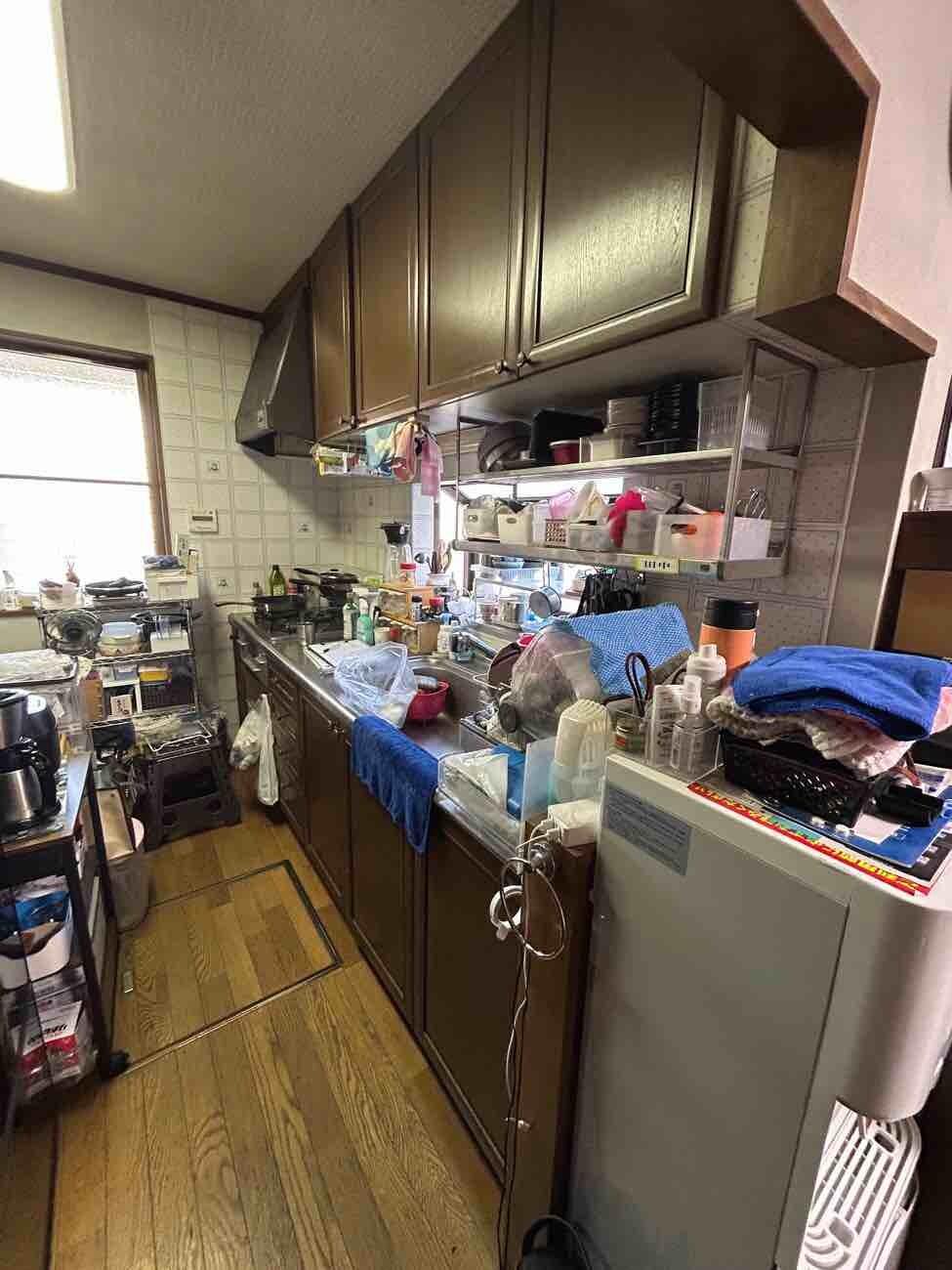 クリナップ rakuera キッチンパネル 現場養生 キッチン解体 配管切り回し 廃材運搬