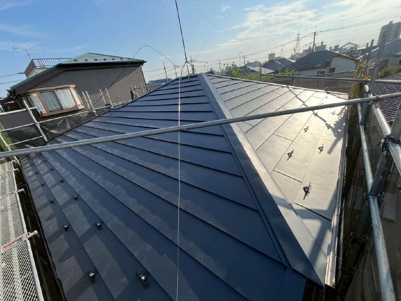 既存瓦屋根解体 56㎡ 下地ベニヤ貼り 56㎡ ガルバリウム鋼板 瓦他処分込み アイジー工業 スーパーガルテクト