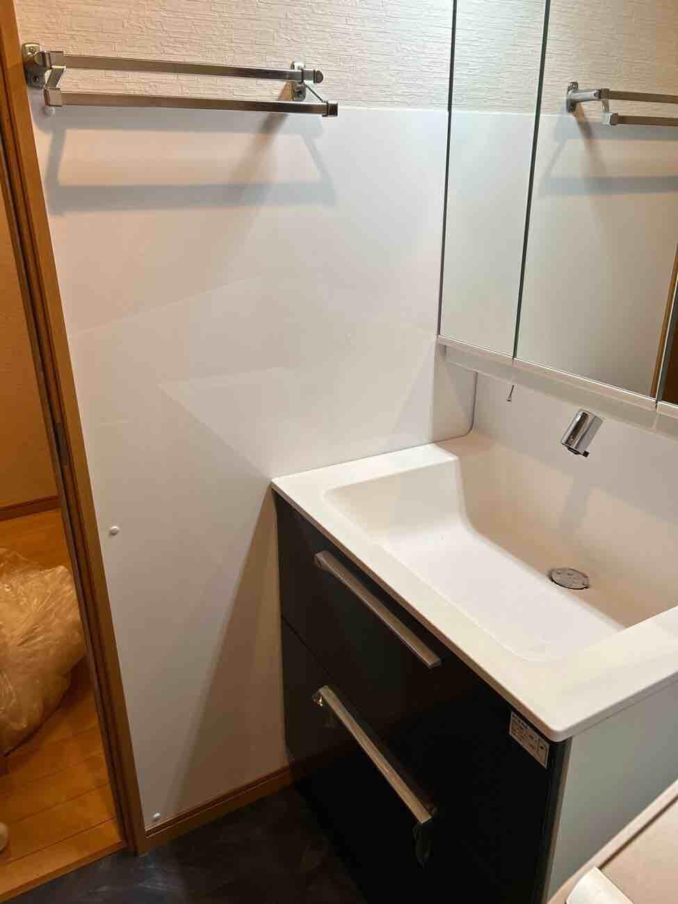 埼玉県三郷市O様邸洗面化粧台交換工事が完了しました。リクシル LIXIL ピアラ 洗面化粧台 LIXIL リクシル ピアラW750 本体2段スライド D560ミドルカラー 水栓スタンダード ナビッシュキャンペーン 3面鏡ノーマル 交換 吊り戸 交換施工