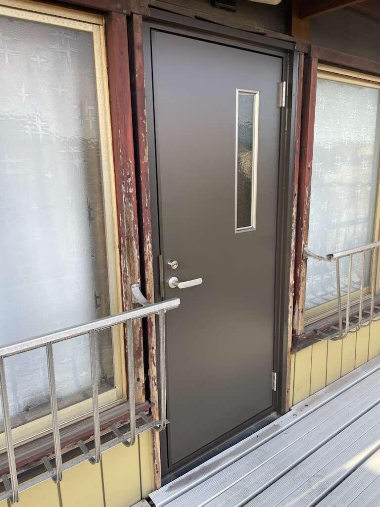 元々は木目調のドアでしたが、長年の使用により表面の腐食や塗装の剥がれが進行しており、見た目や耐久性に課題がありました。