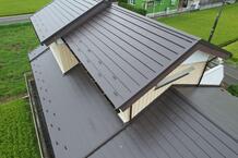 埼玉県三郷市H様邸屋根葺き替え工事 ニチハ 横暖ルーフαs 施工後ドローン確認