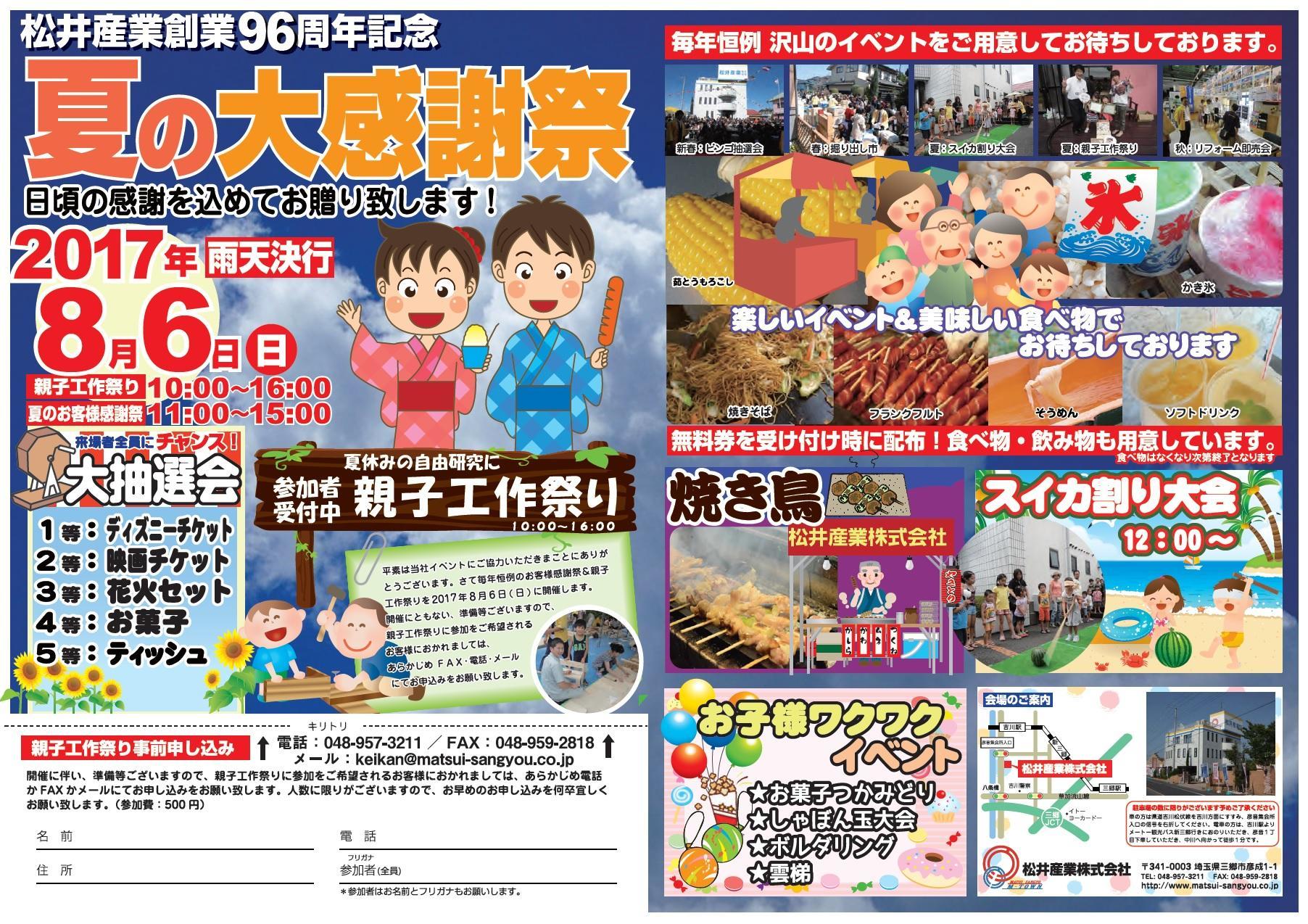 恒例のお客様感謝祭を行います。毎年多くのお客様にご来場いただいている夏のお客様感謝祭が今年も開催されます。
