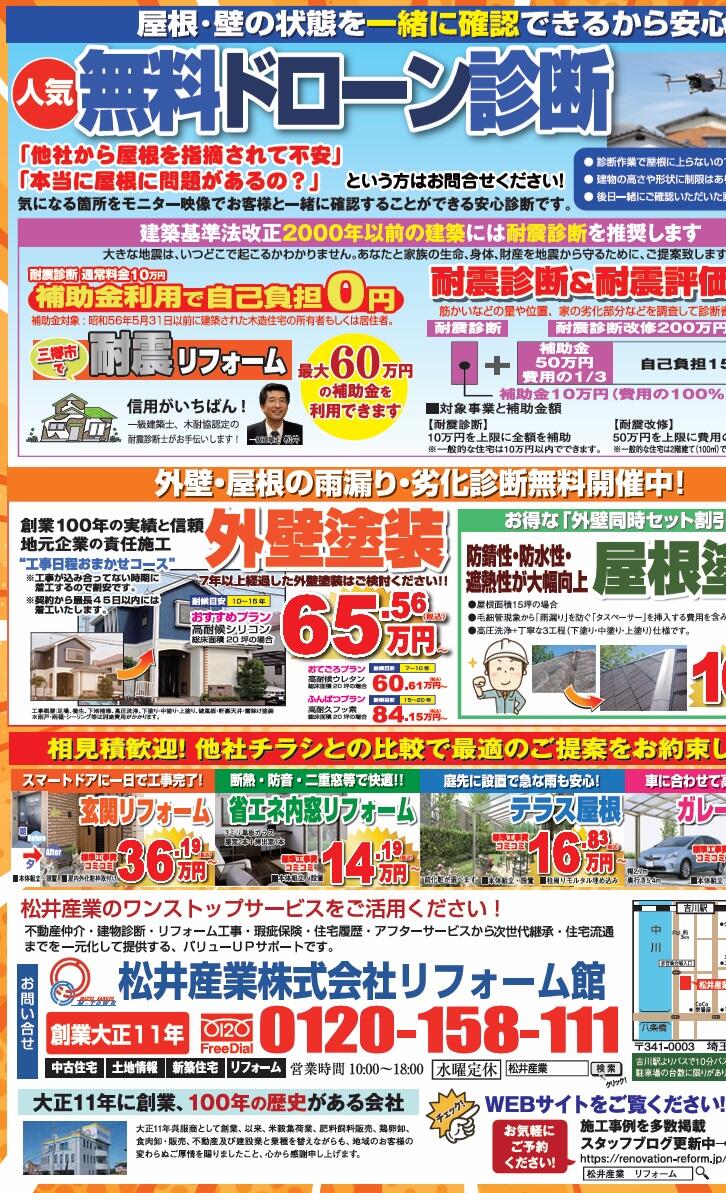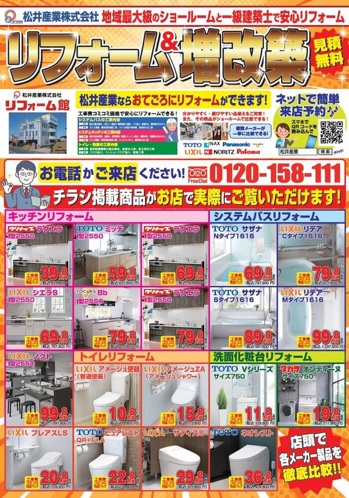 リフォームチラシをリニューアルしました。価格は材工コミコミの値段設定となっています。
