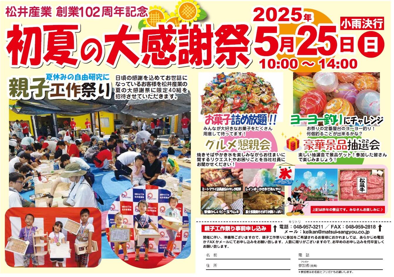 埼玉県三郷市にて親子工作祭り お客様感謝祭を行います。