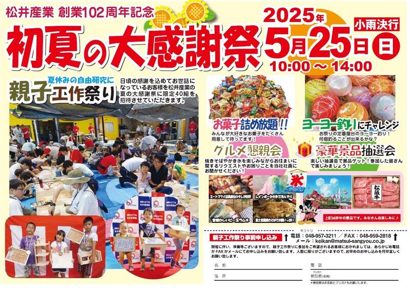 日時 2025年5月25日 日10:00~14:00場所 松井産業参加対象 松井産業の顧客限定40組