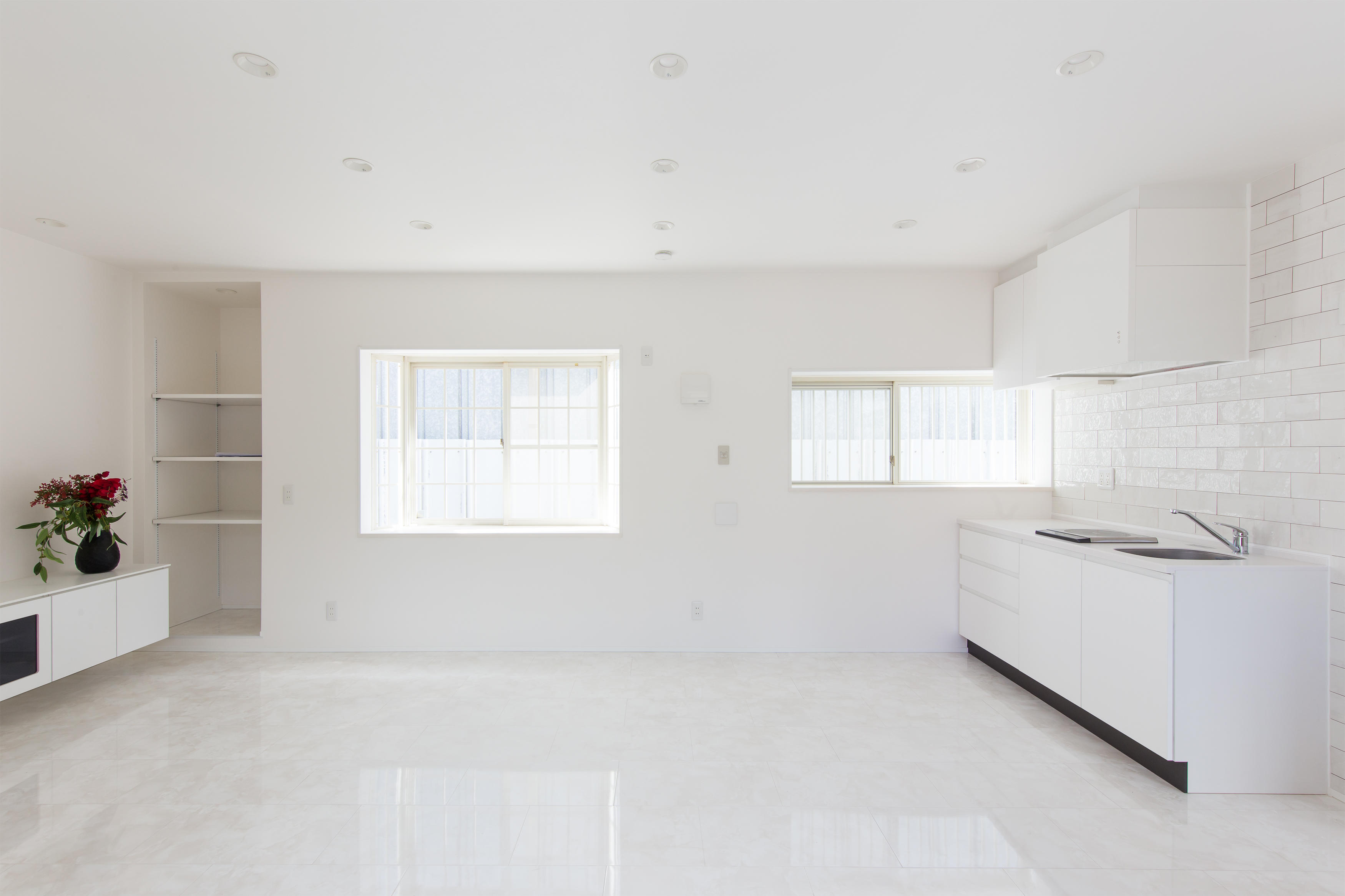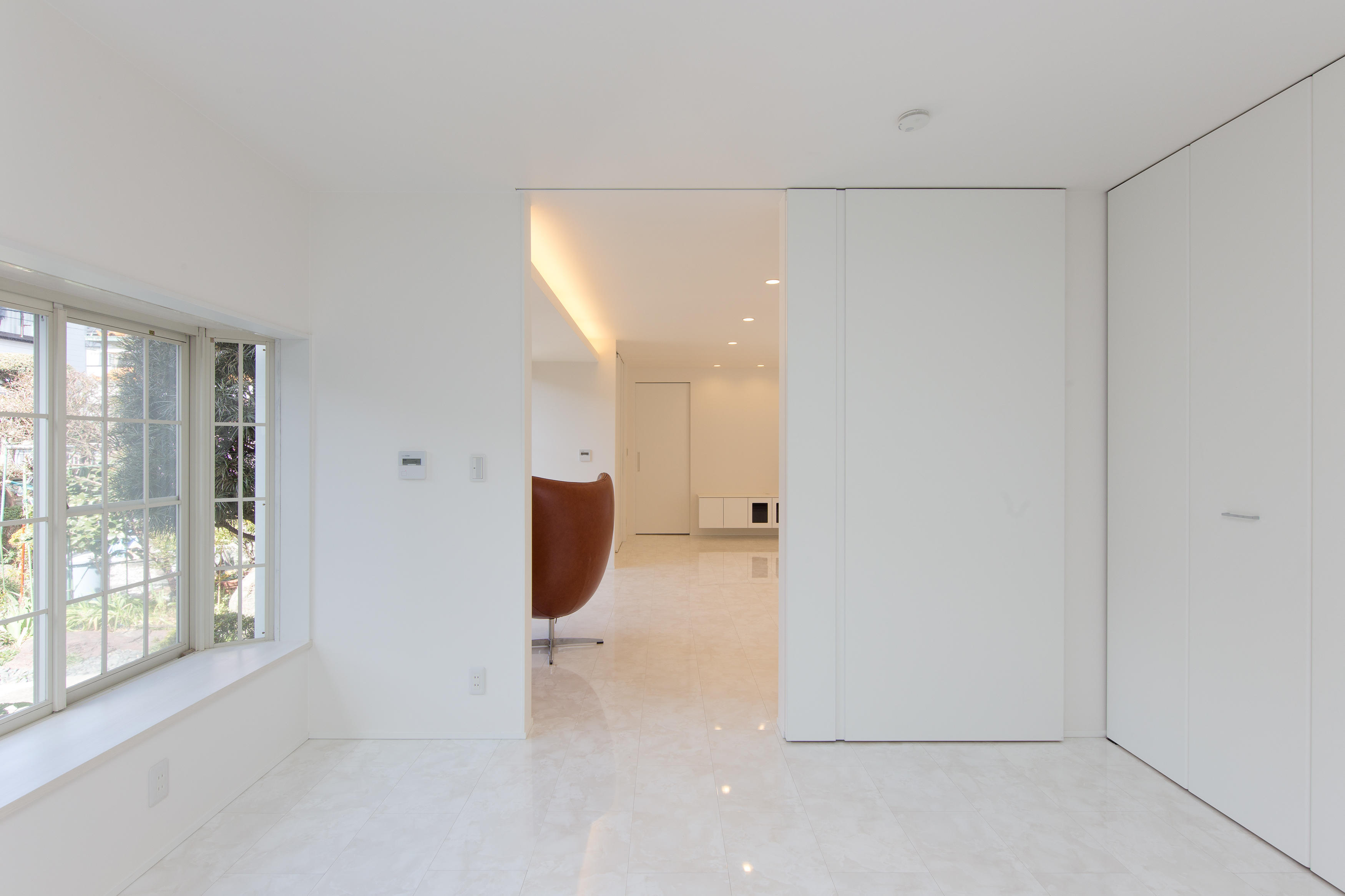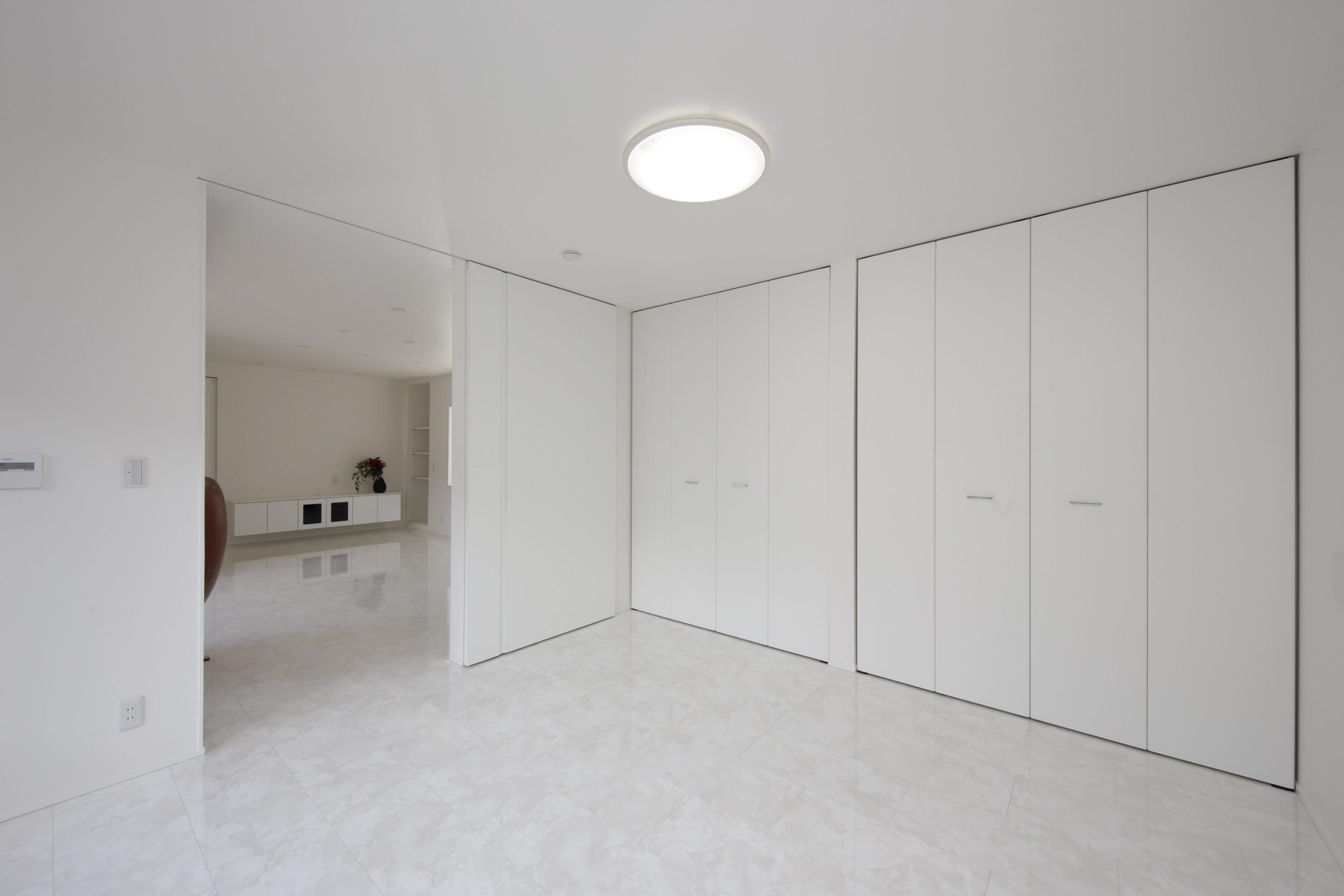 寝室になります。建具は横幅1m20㎝ 高さ2m40cmの大きい扉を付けて空間の広がりを感じられます。建具は天井までのハイドアにすると空間が広く感じられます。