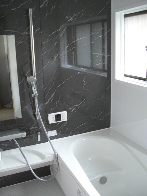 在来浴室からユニットバスへ 浴槽は半身浴が出来るタイプに。 浴室工事に伴い給湯器もエコジョーズに変更しました。
