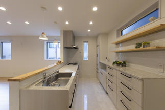 お施主様のイメージ通り清潔感漂うイメージに完成しました。 ご引っ越しの時親族の皆様が新築?とおっしゃっていたのがとても嬉しく思いました。 台風が立てつづけに来た中での工事でしたのでどうなる事と思いましたが、お施主様のご理解 とご協力で無事お引き渡しできました。 子供さんの成長も親戚の一人になった様な気分で楽しみにしています。