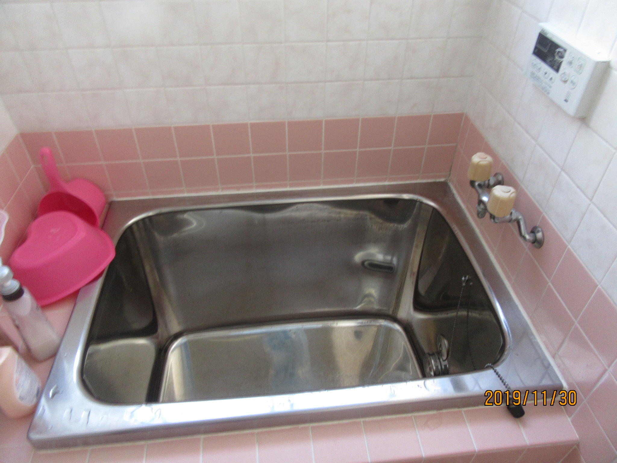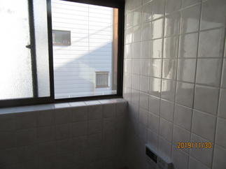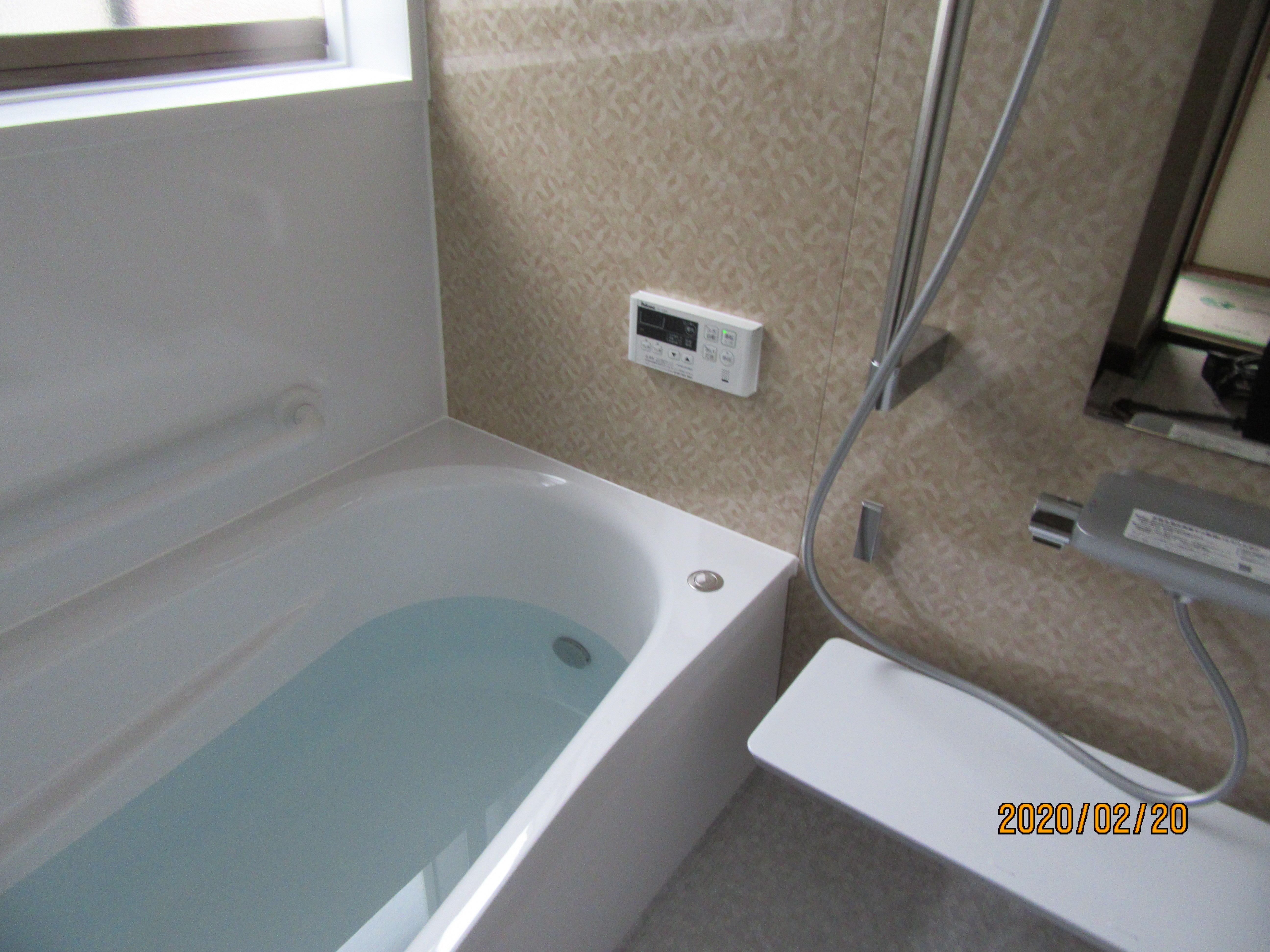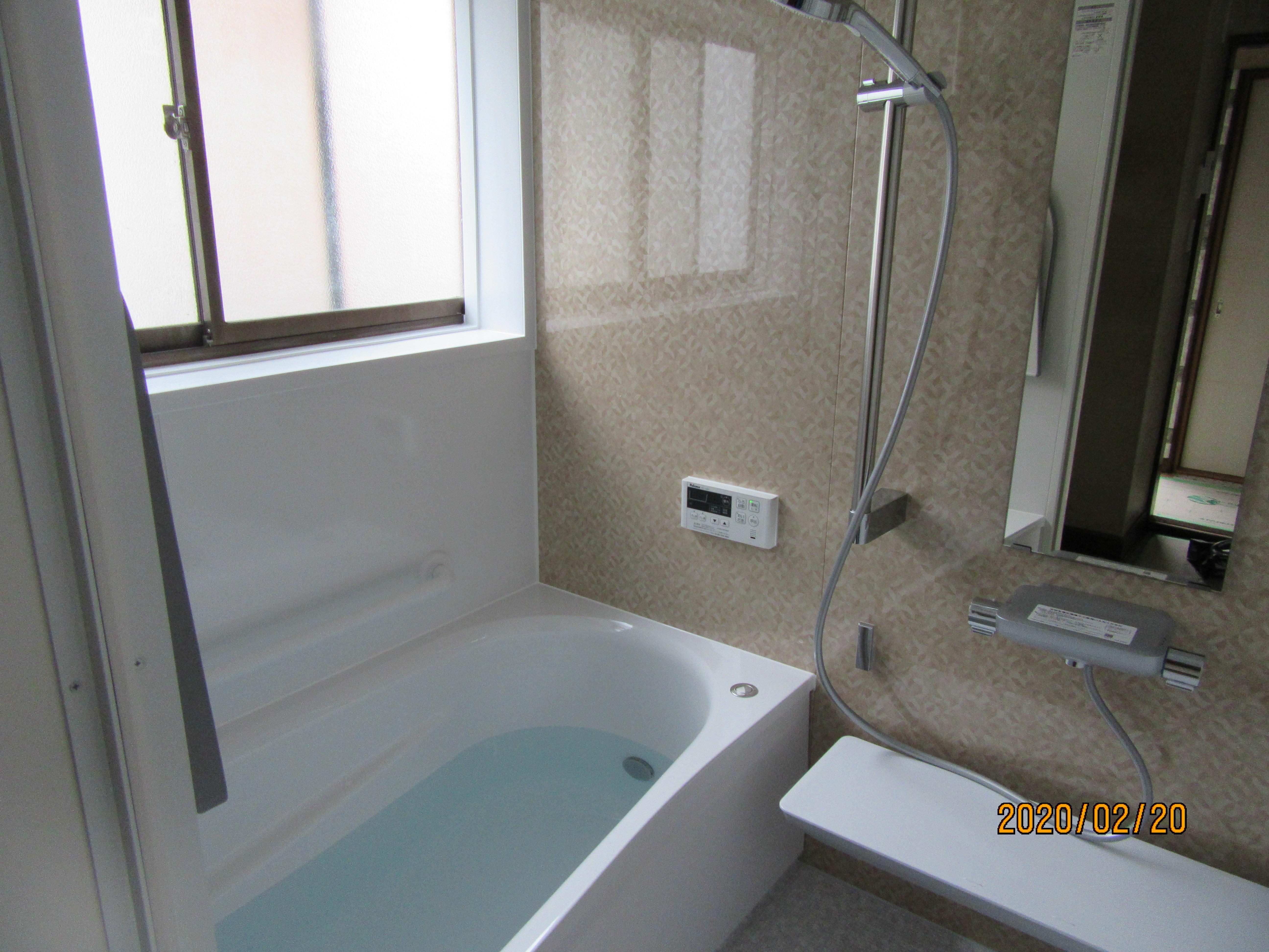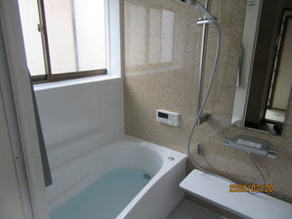 在来のお風呂からユニットバスに施工致しました。サッシもキレイに収まりまして、明るく見えます。