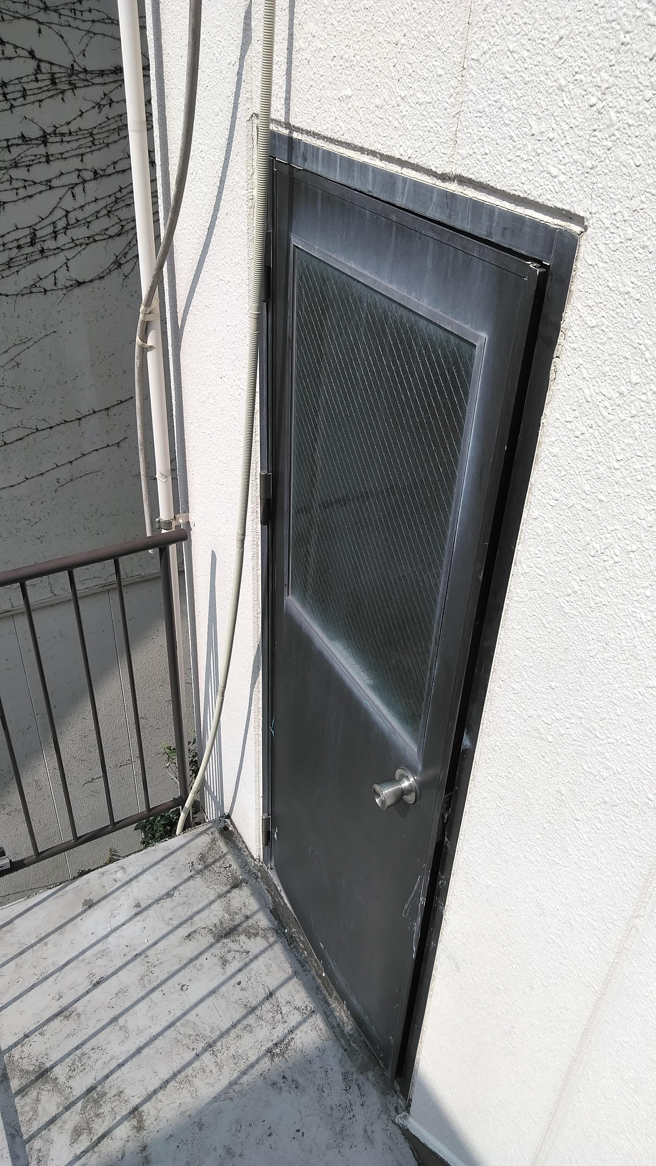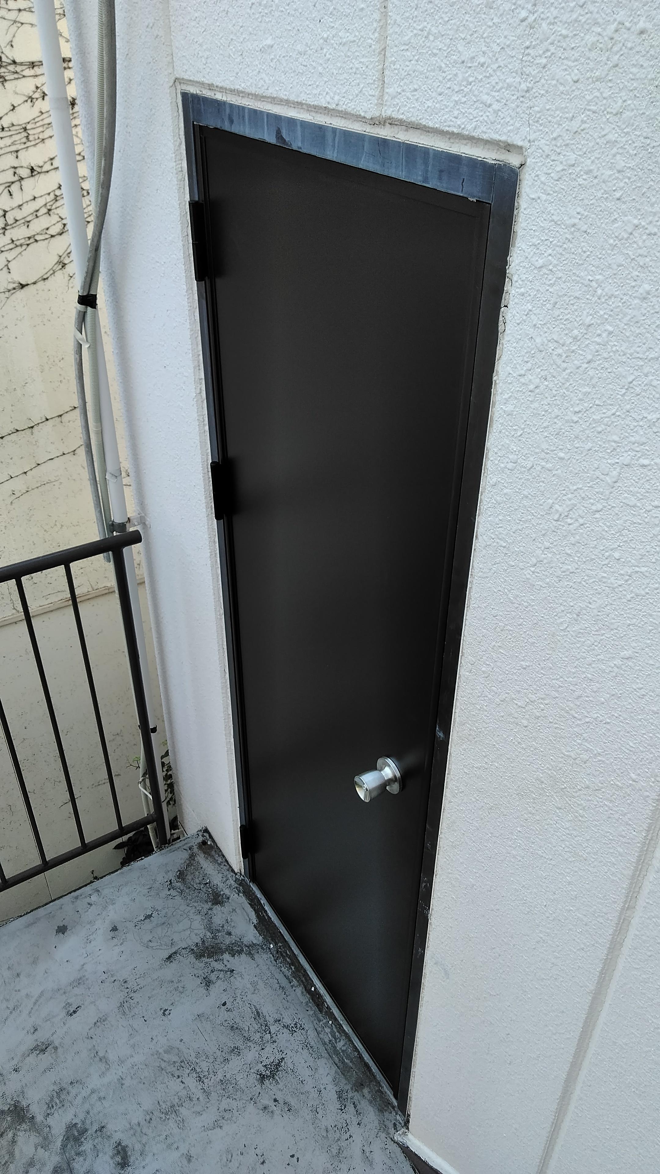 倉庫の古くなった扉を交換しました。時短とコストを抑える為、枠は残して扉本体のみ交換しました。