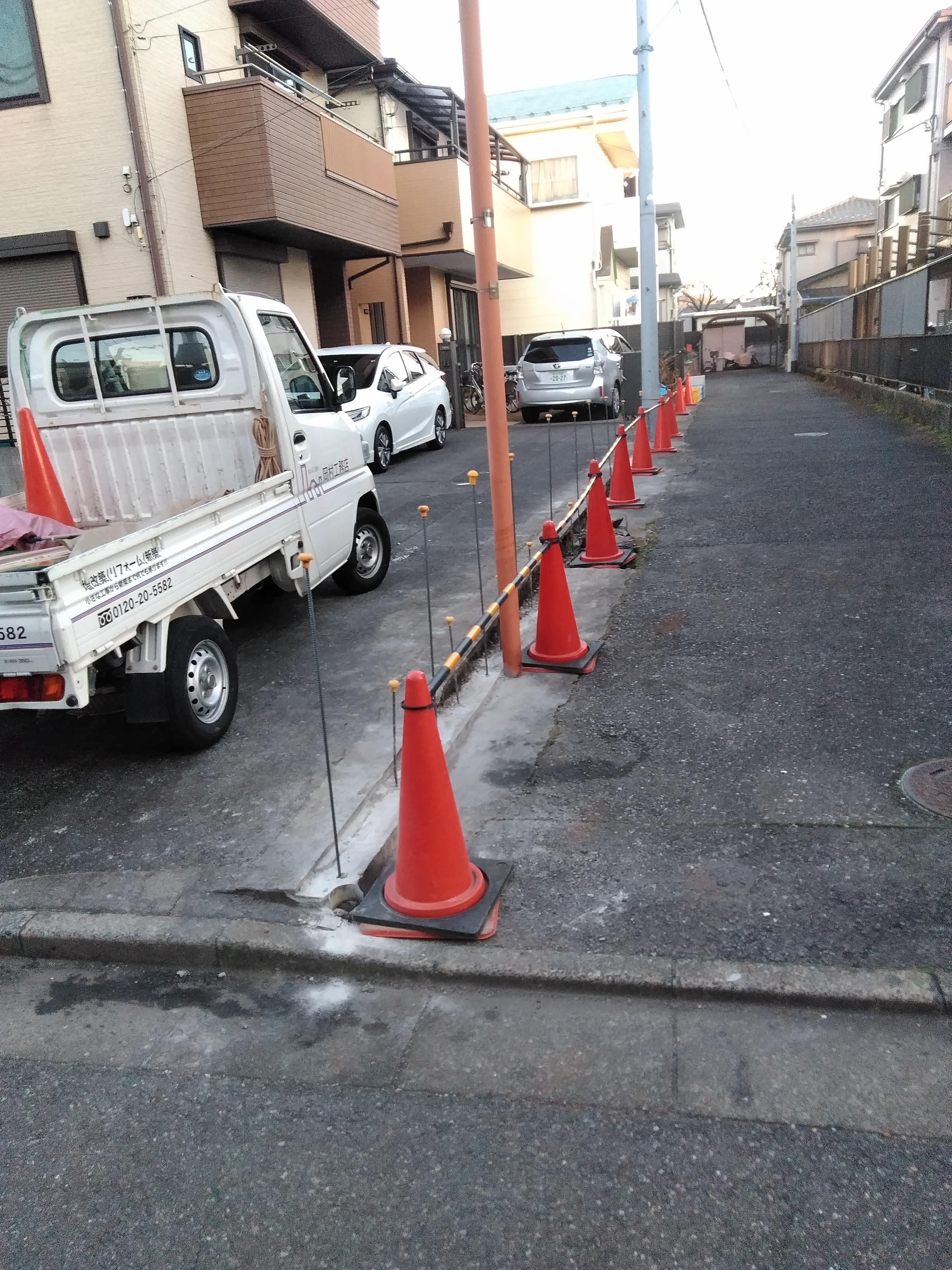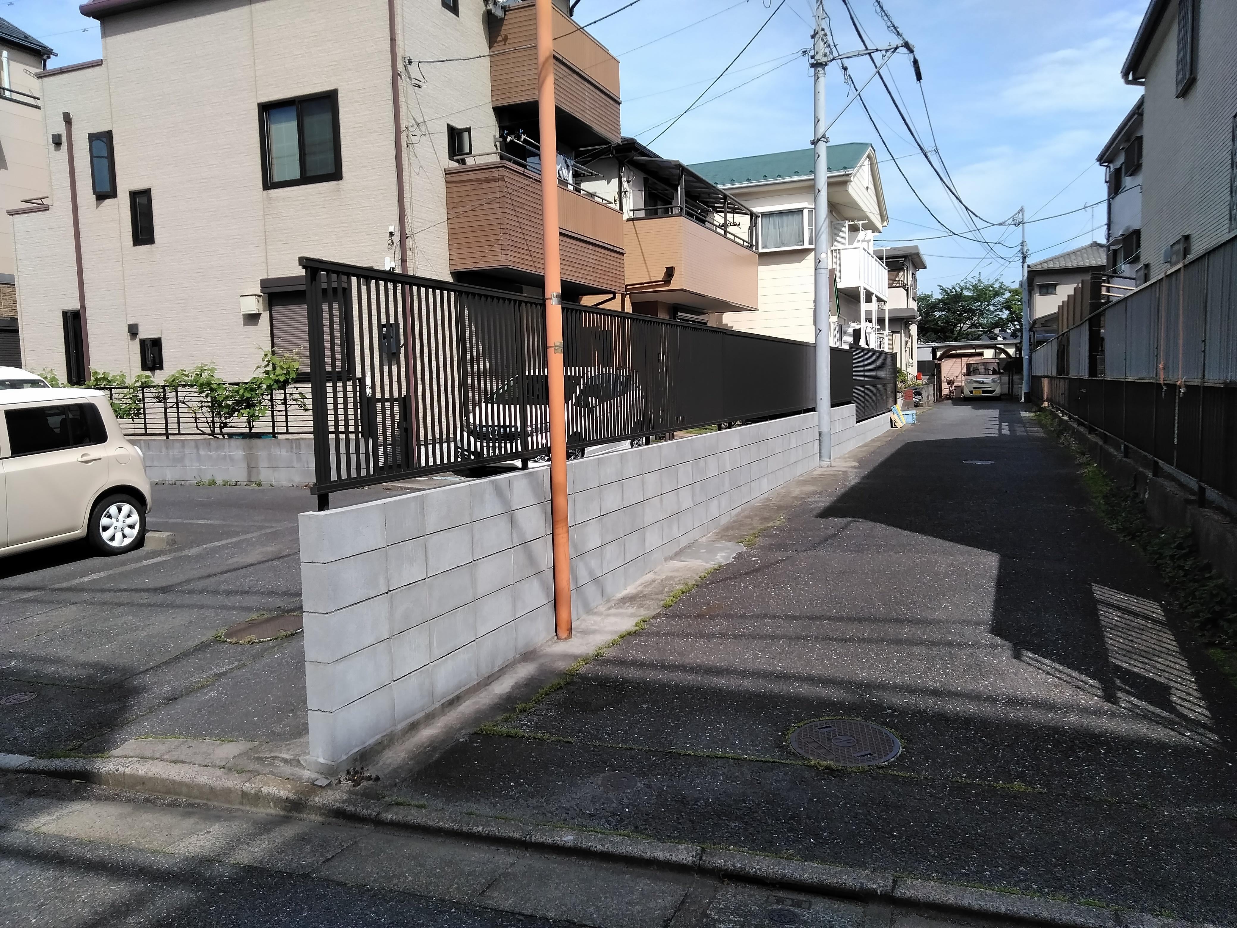 昨年の台風にあおられてしまい万が一の為、新しく致しました。奥の自宅側には、リクシル ライシスフェンス、道路側は通りが良く見えるようにプレスタフェンスの縦桟に致しました。