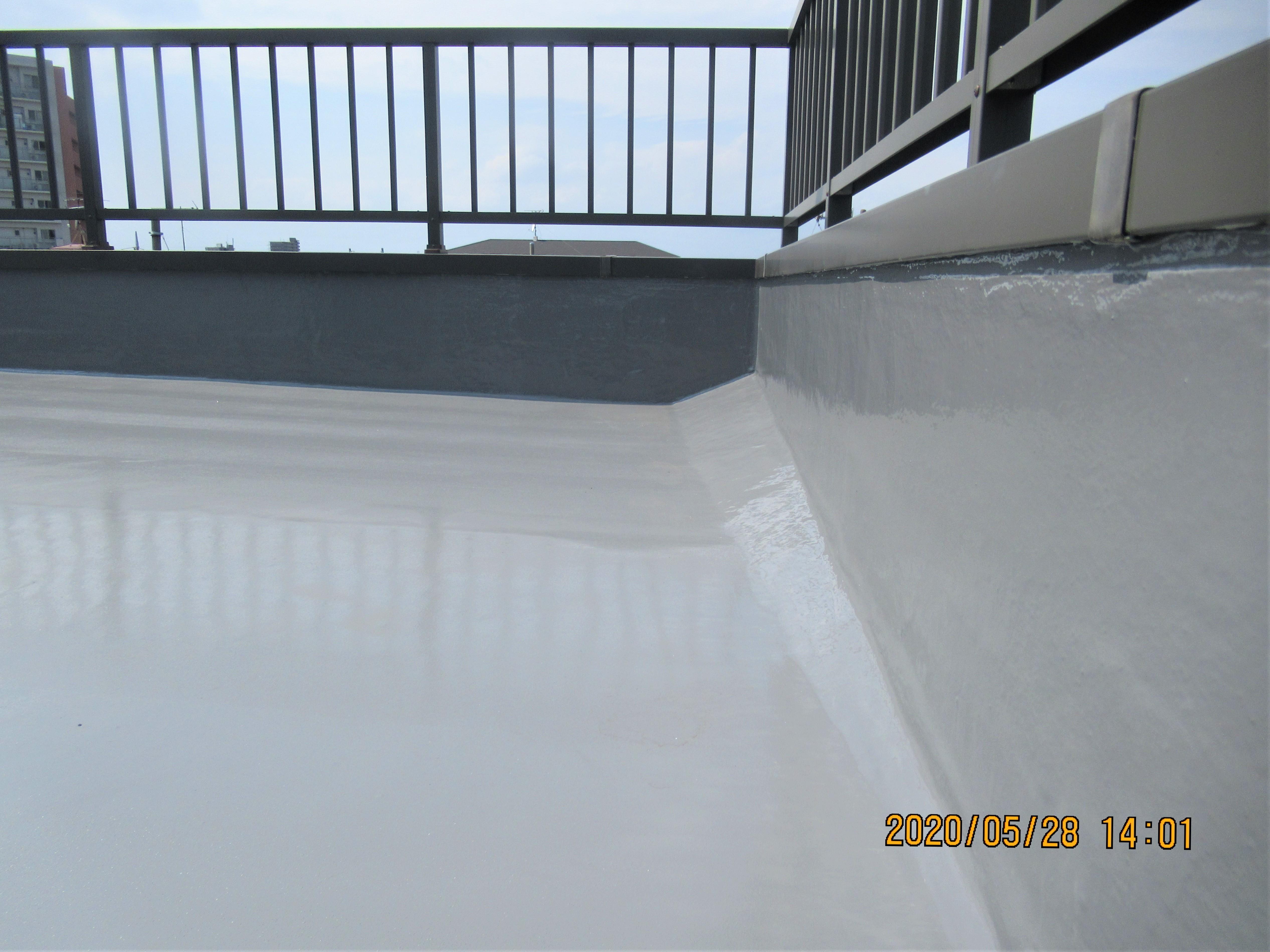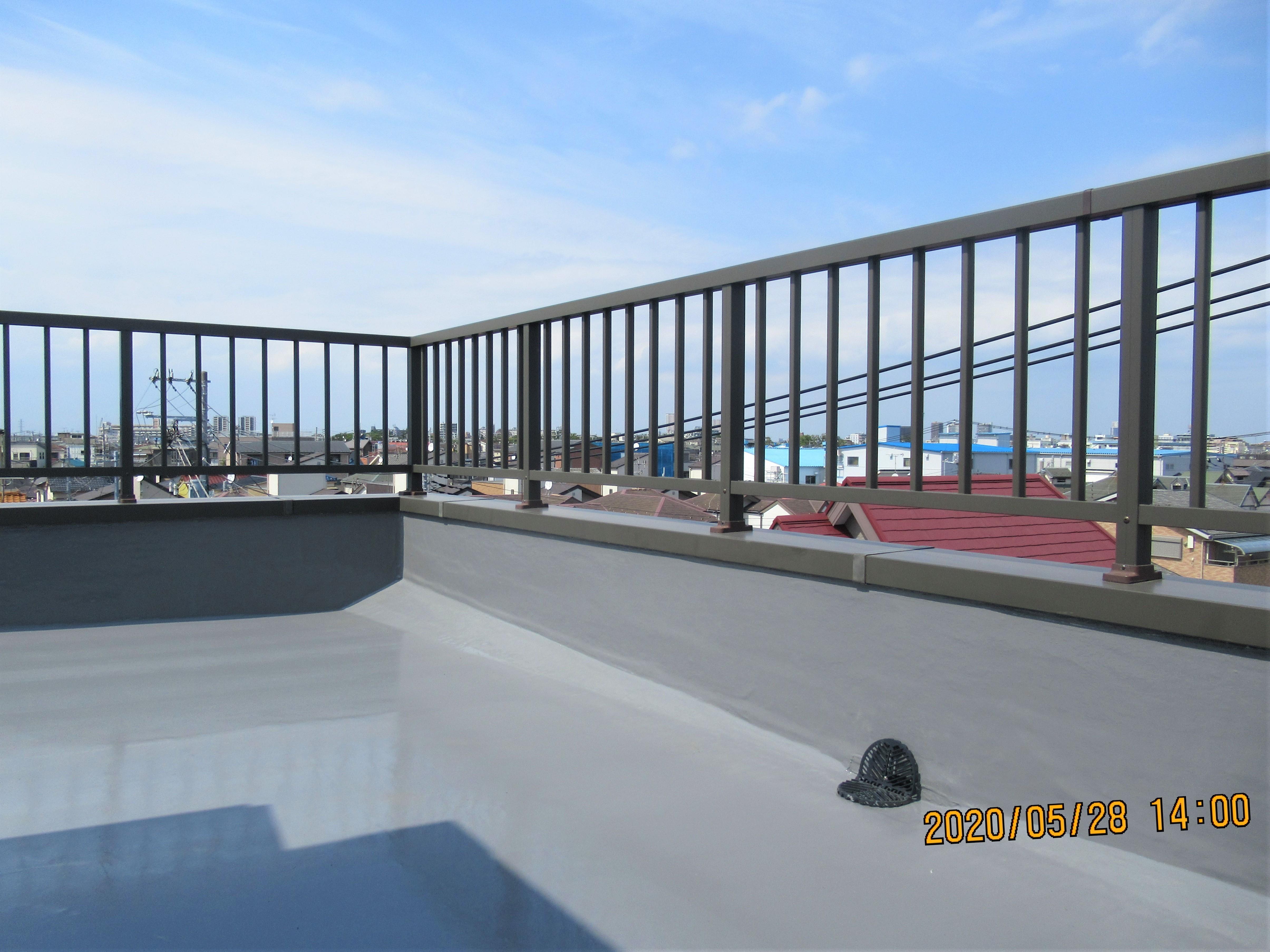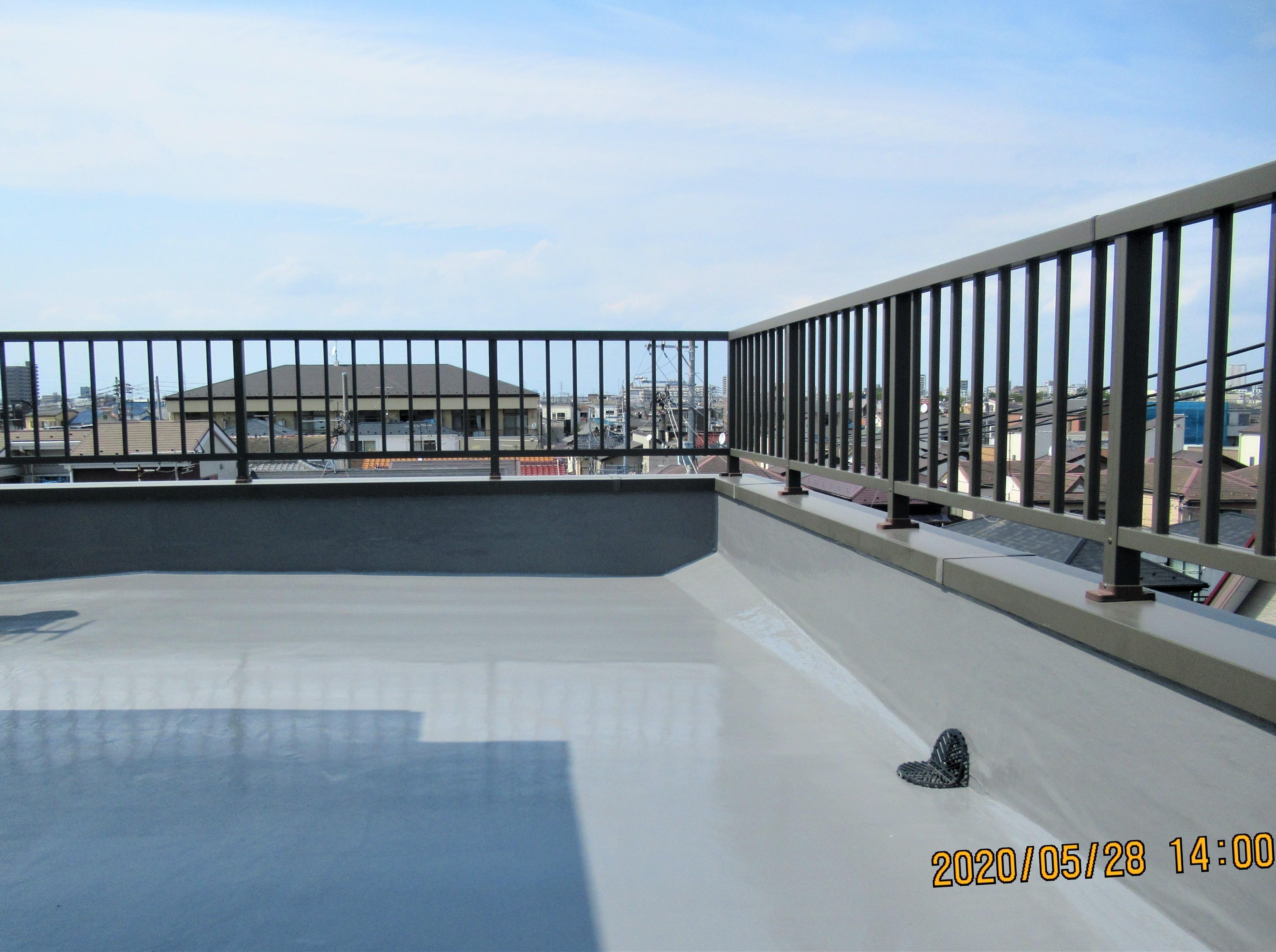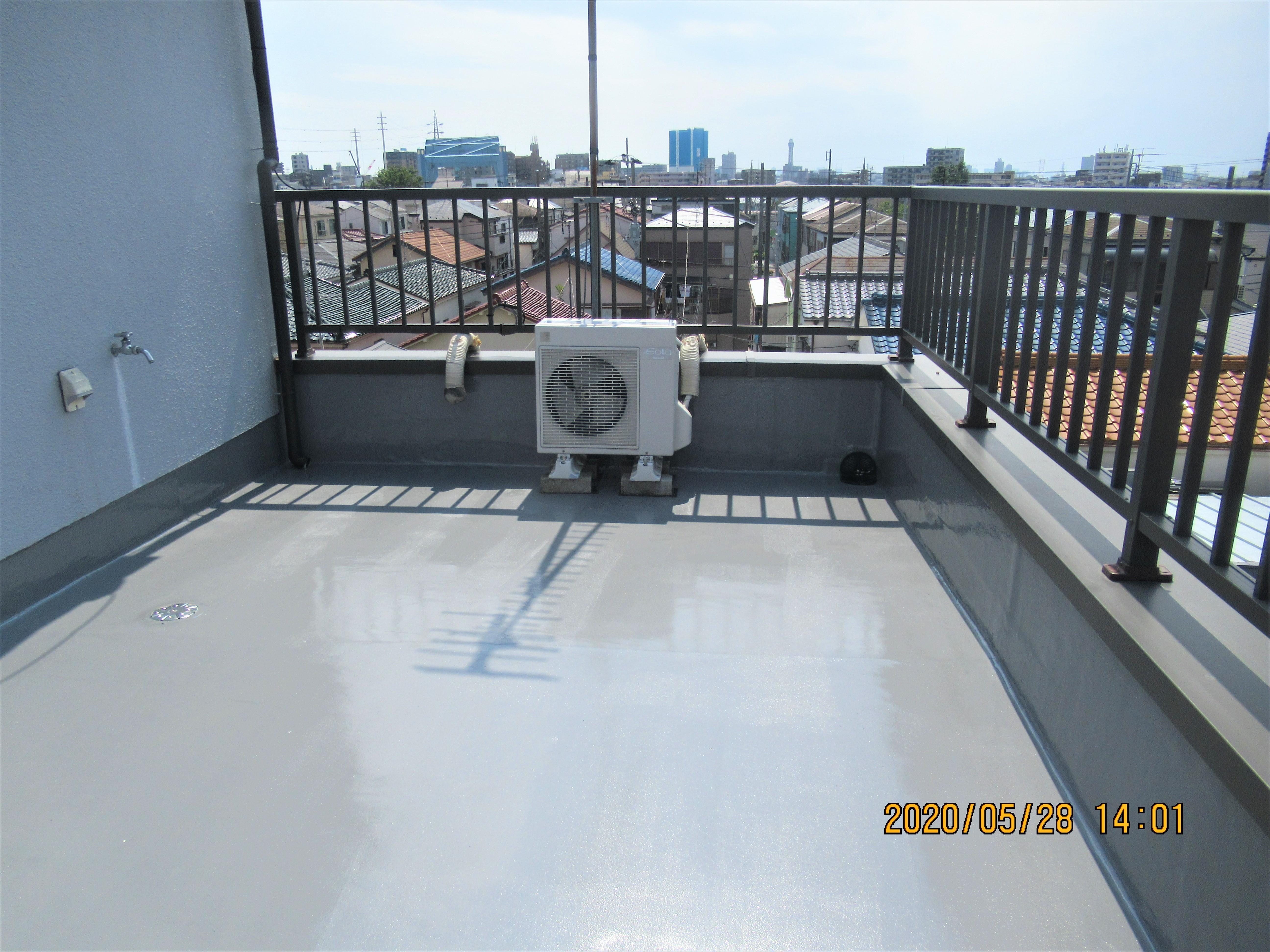 老朽化で雨漏りがあった屋上まわりをリフォーム。 あわせてグレーの落ち着いた屋上になりました。