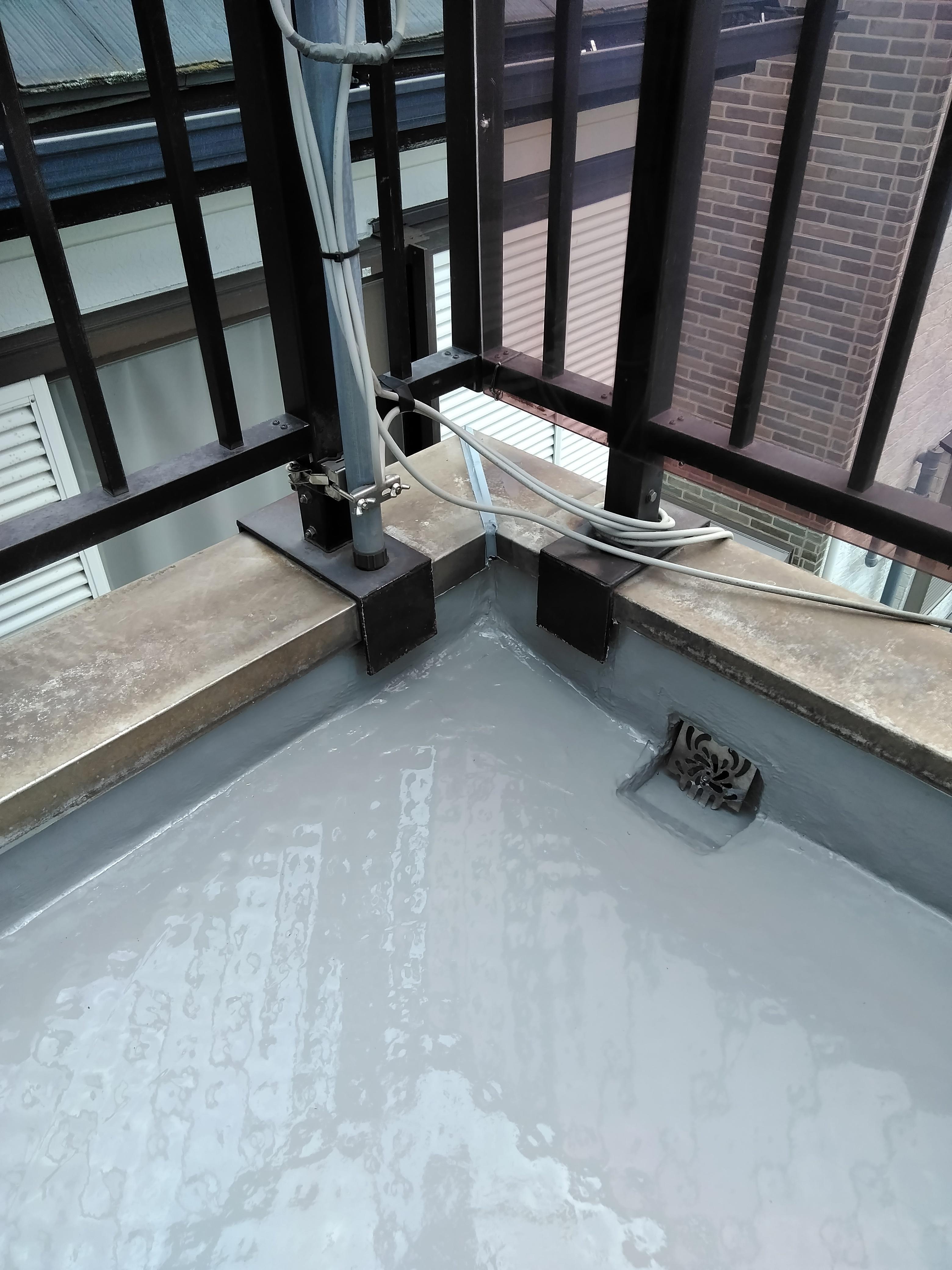 バルコニーの防水に膨らみが発生して為、補修工事を行いました。ドレン廻りもキレイになり排水もよりスムーズになりました。