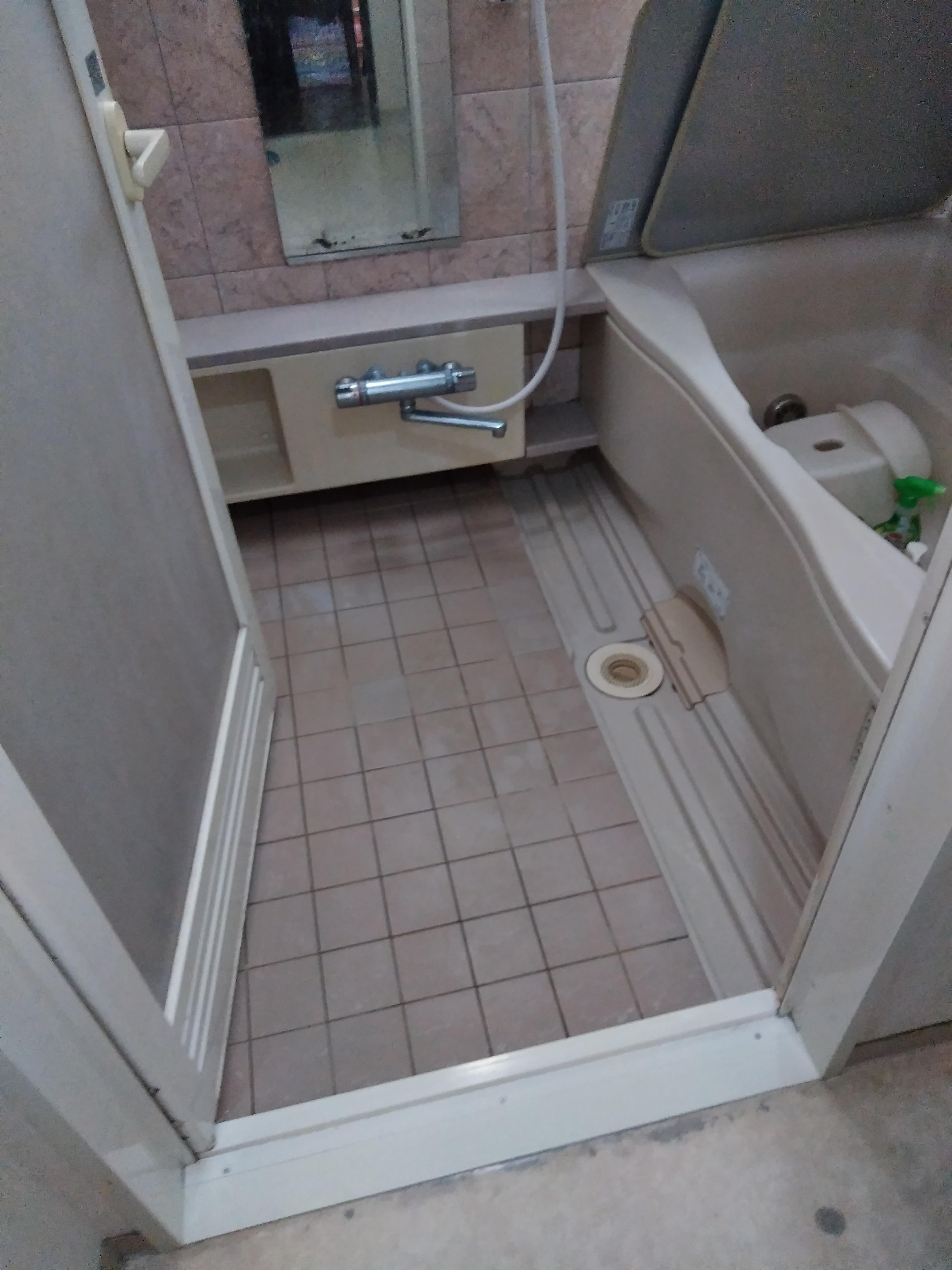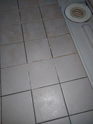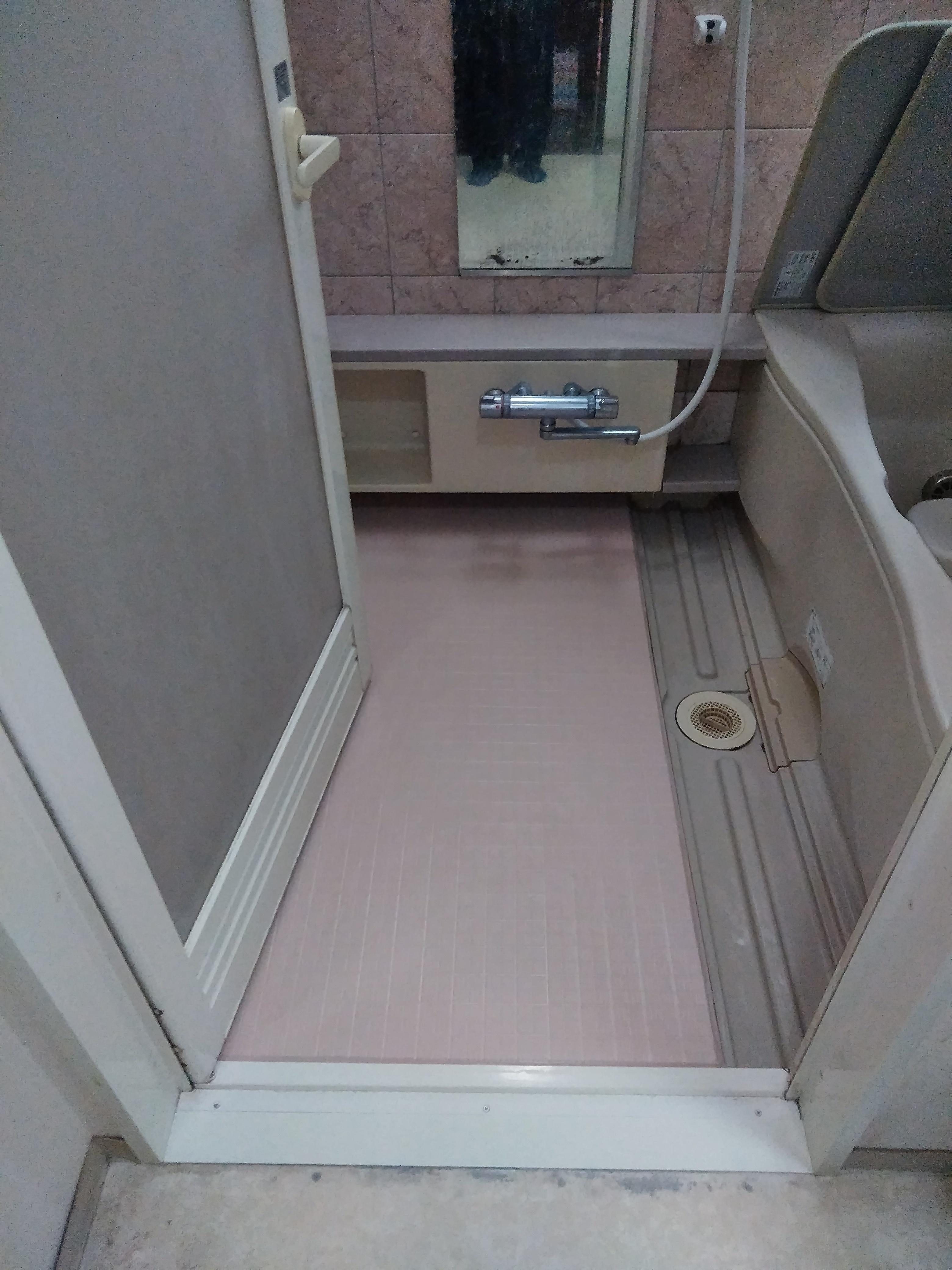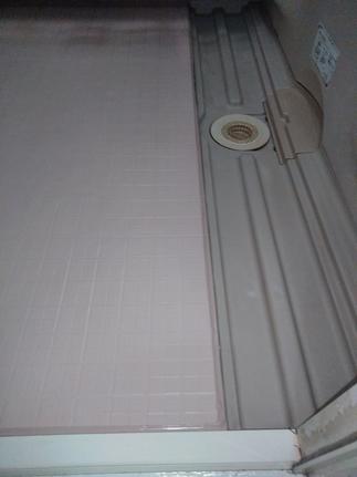 浴室の床が掃除をする事で痛んでしまったと相談がありました。既存の床に新しい床を上張り致しました。気になっていた目地もきれいになり喜んで頂きました。