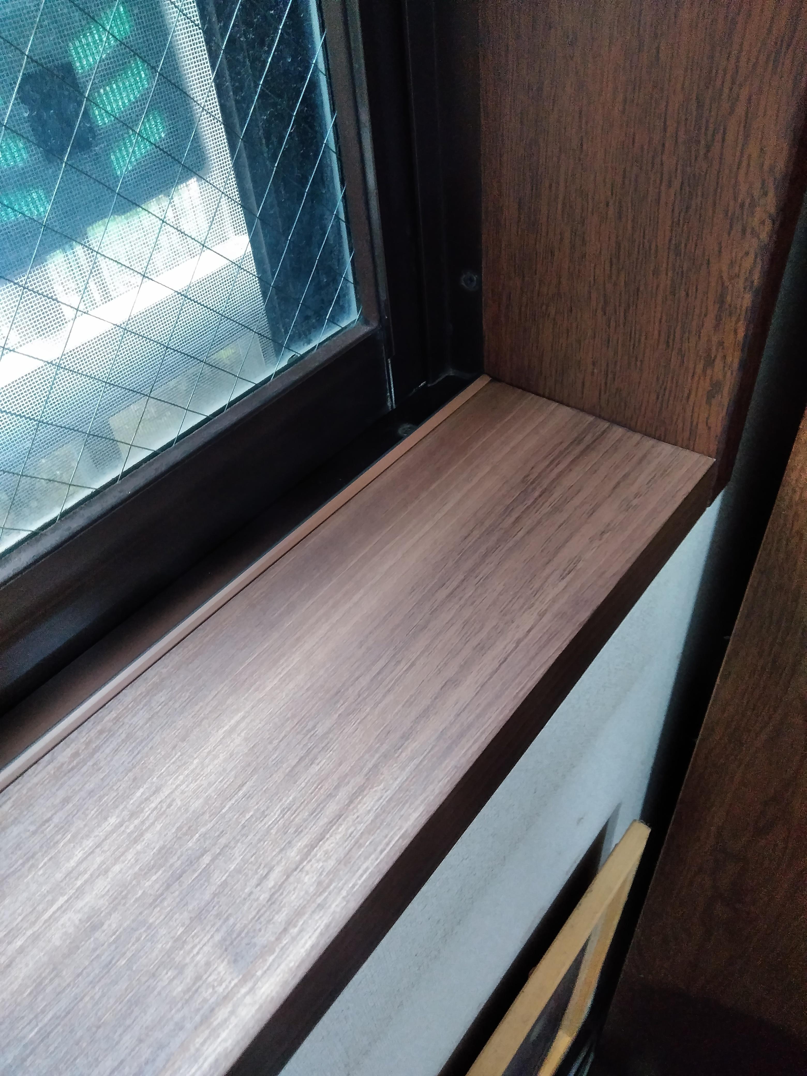 窓枠の日当たりがよくシートがめくれてきてしまって居りました。既存のシートを剥がして、リフォーム用の窓枠カバーを上からかぶせて施工致しました。お客様からお掃除の度に気になっていたので大変喜んで頂きました。