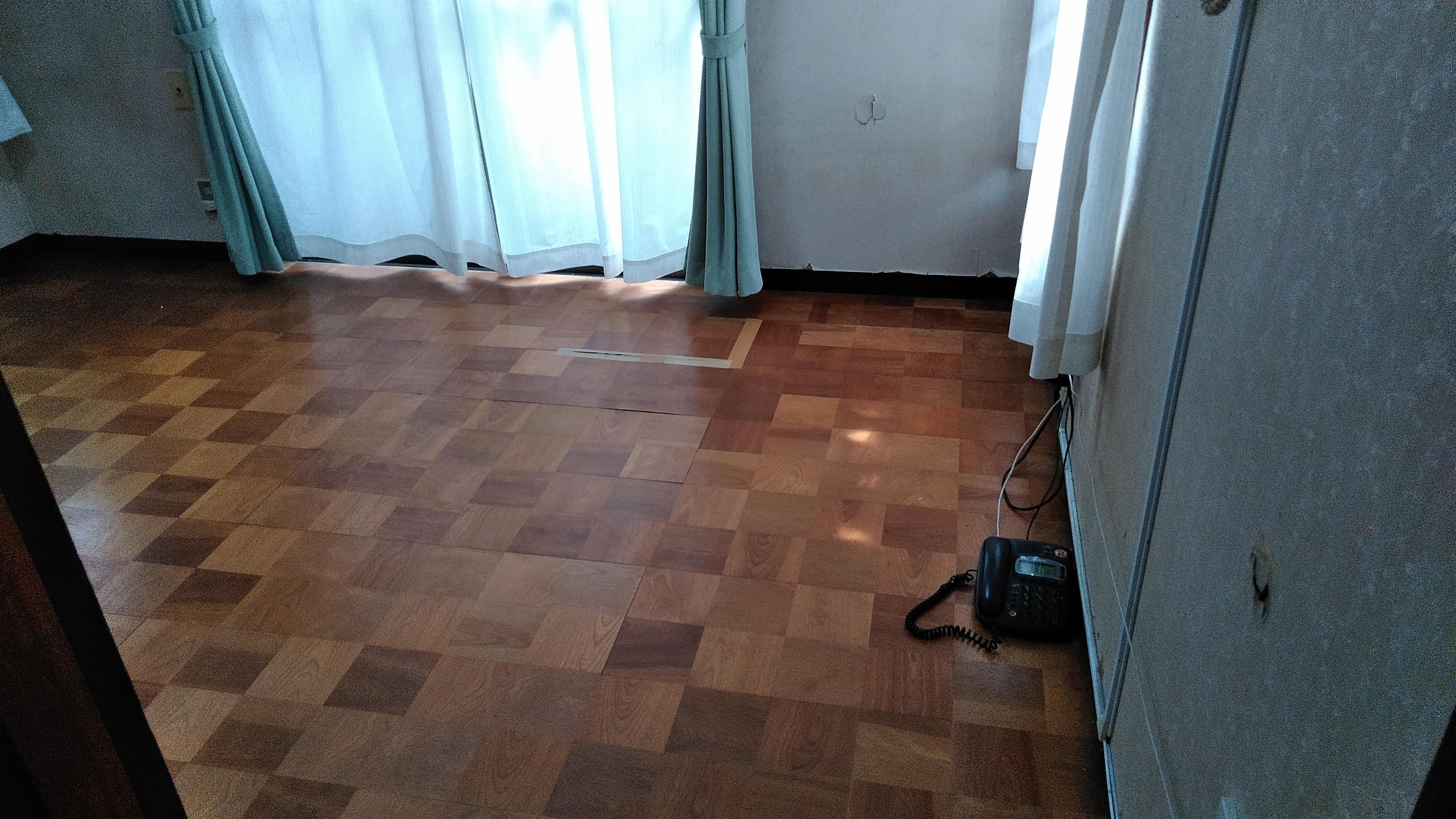 洋室のフローリングを一新いたしました。痛みはほとんど見られませんでしたので、既存の床の上に重ね貼りで施工いたしました。上張り施工でリーズナブルに出来ました。