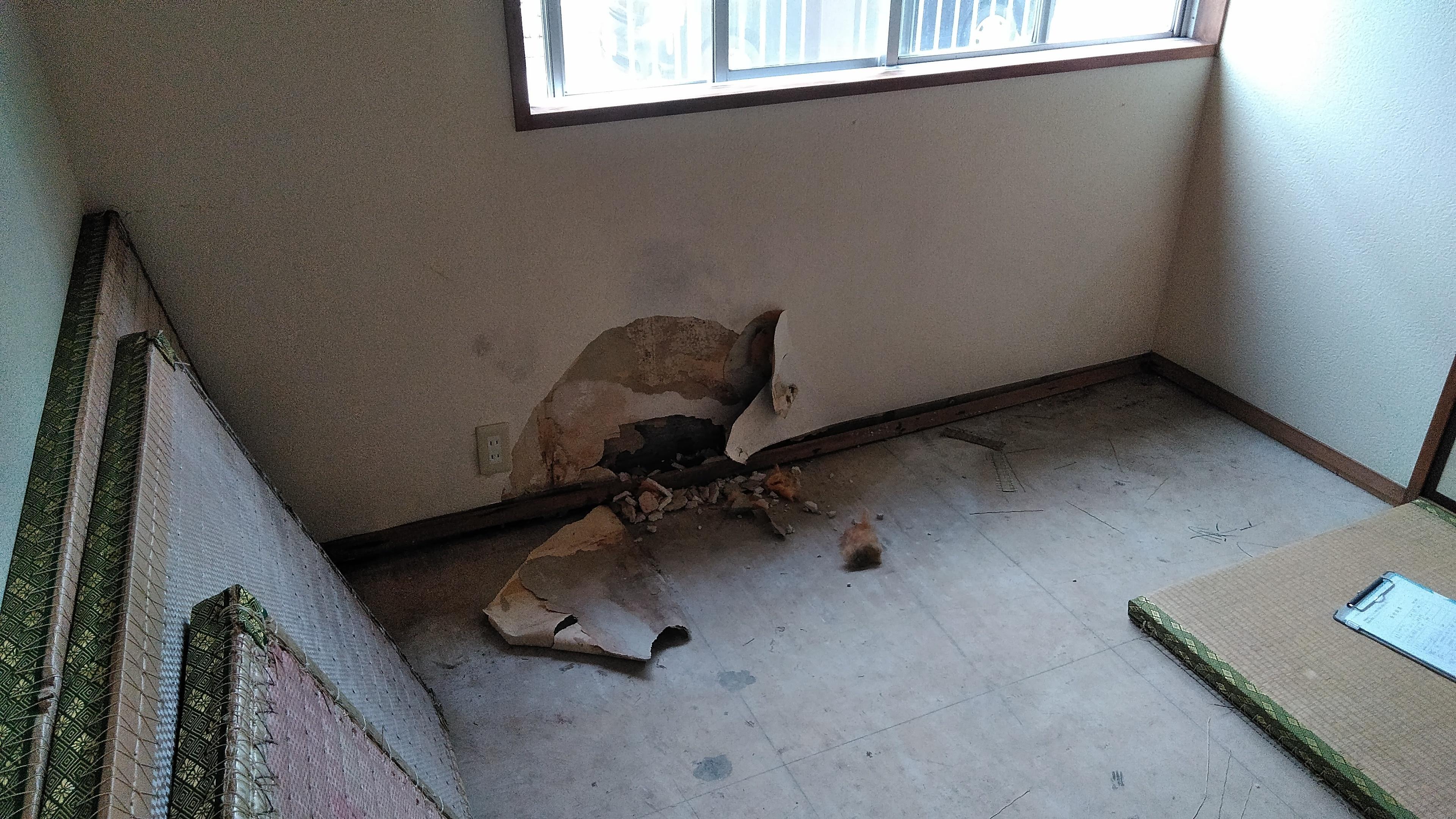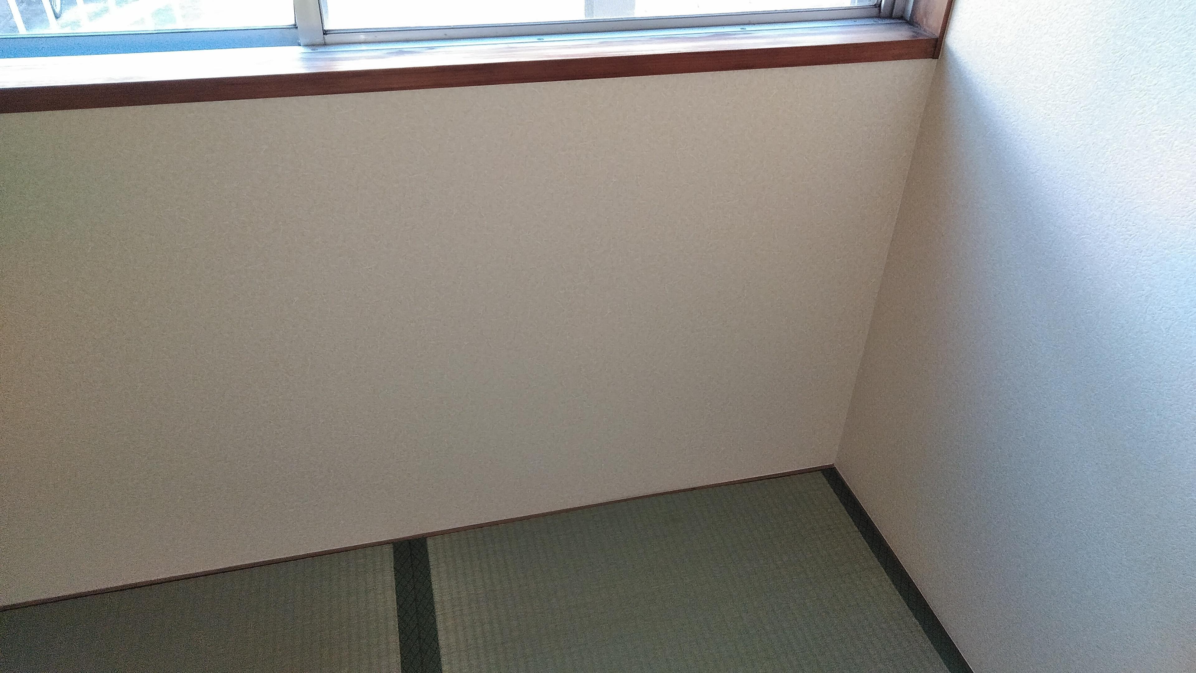 賃貸マンションの壁補修です。外壁からの雨漏りと結露による影響で内壁が傷んでいました。次にお住まいの方の為に、気持ちよく使って戴きたいと希望がありリフォーム致しました。外壁側の雨漏りを補修し、散水調査にて雨漏りの有無を確認。内壁をきれいに直しました。畳を新しくしまして完成です。