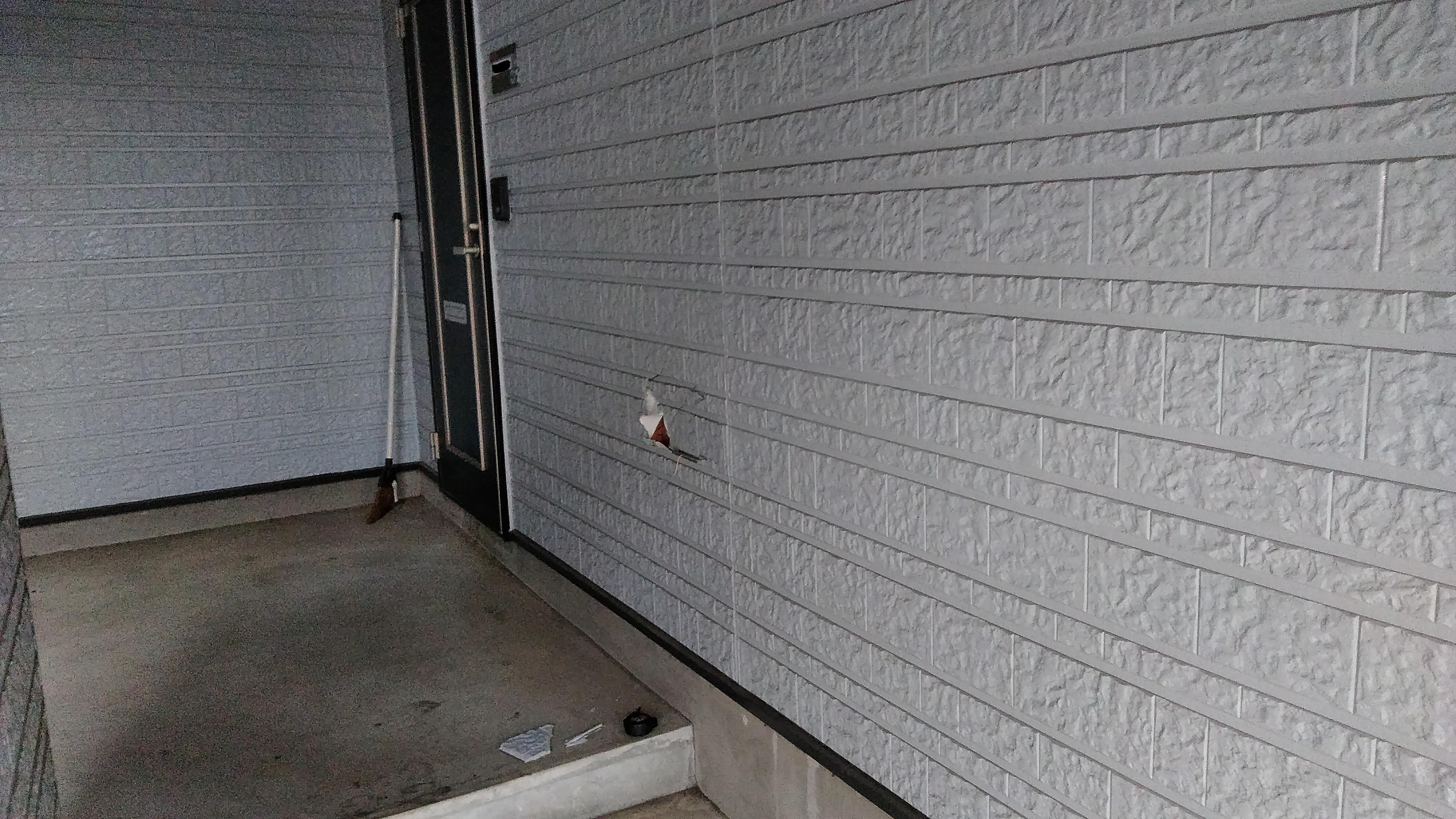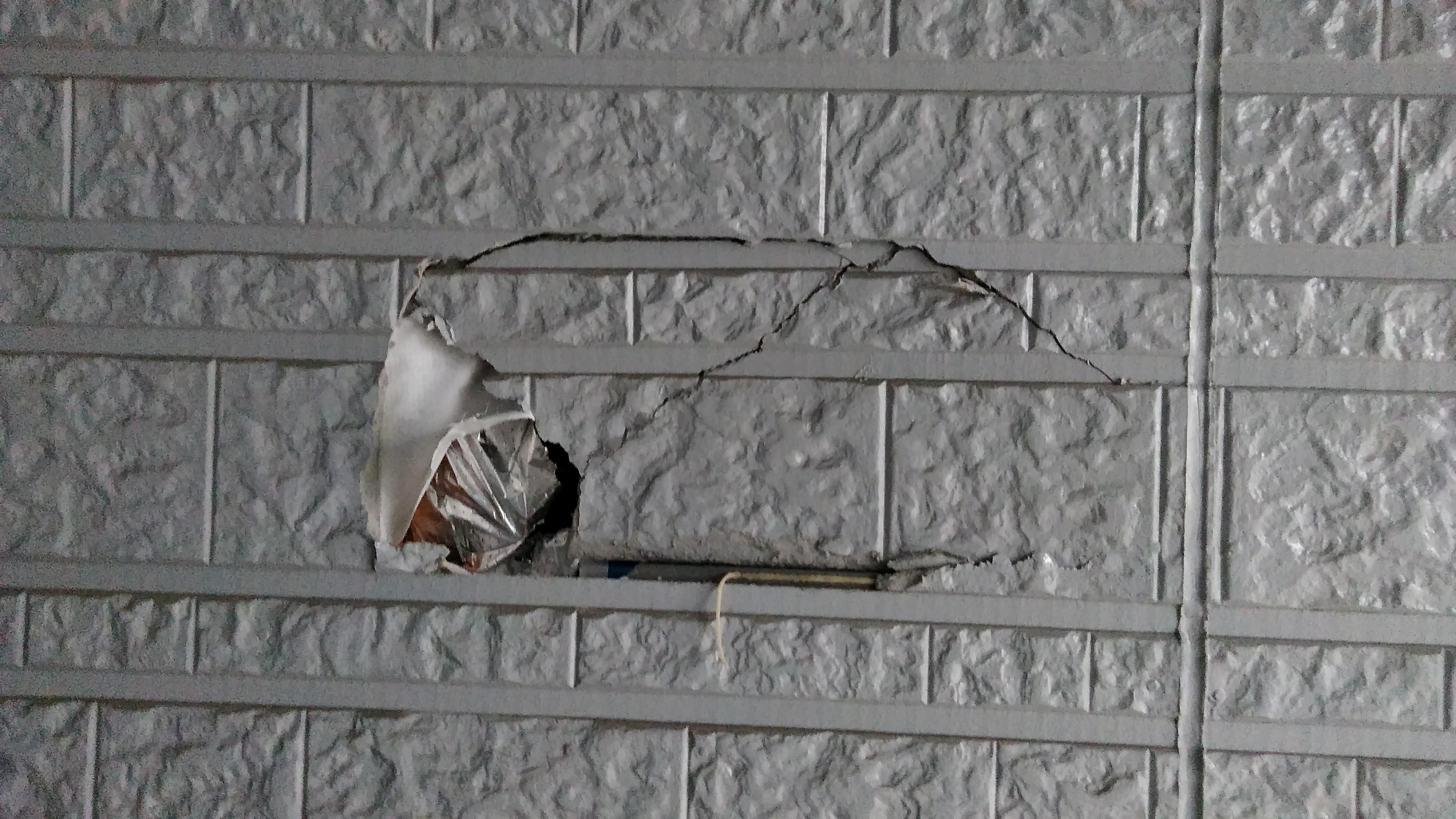 お客様から重い物を運んでいた際に、ぶつかってしまい外壁を傷めてしまったそうです。似たサイディングと既存のサイディングにて補修いたしました。塗料がまったく同じ物ですので、跡がまったく解らないくらいきれいになりました。