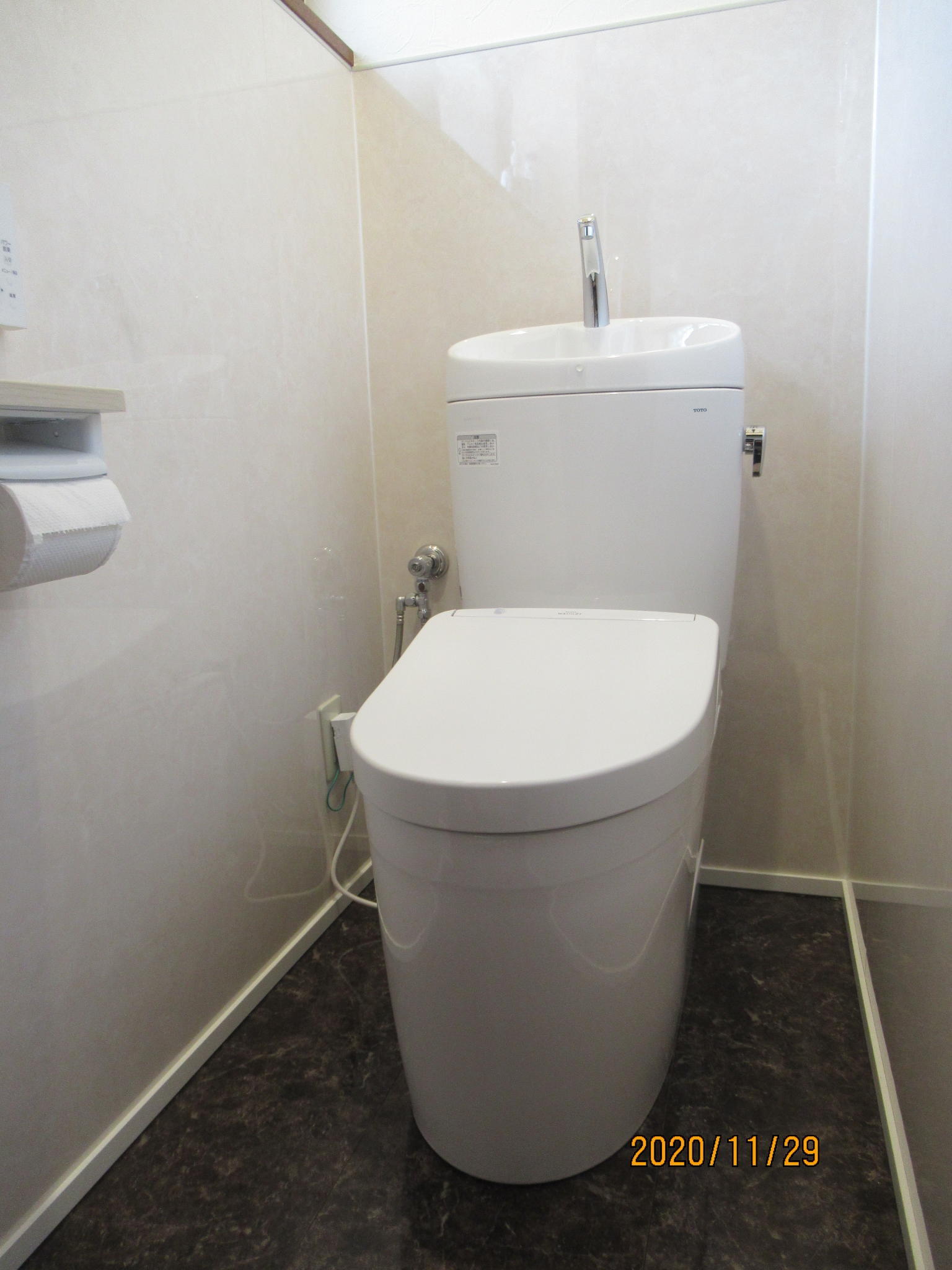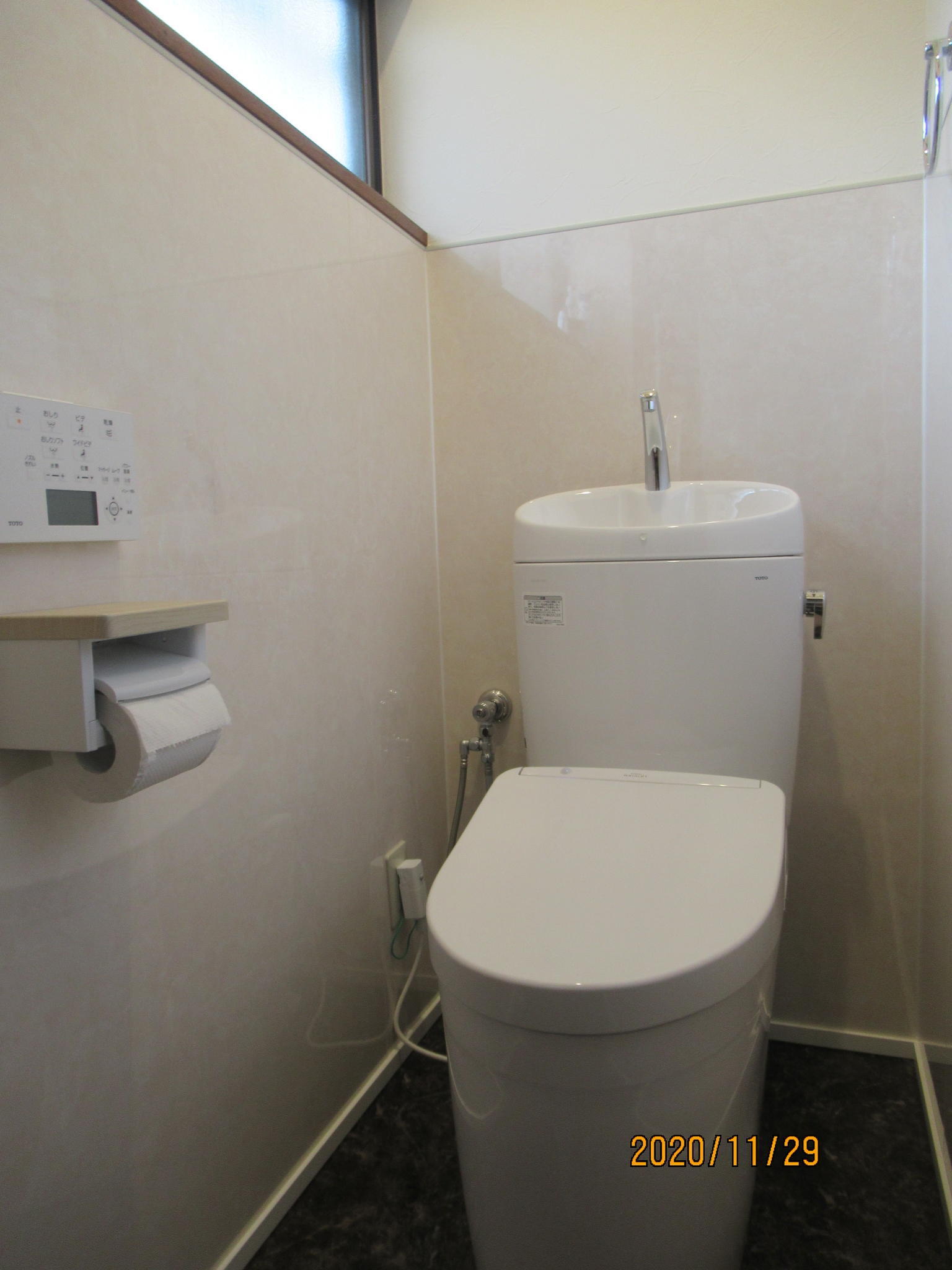 床は大建『ハピアフロアー』光沢があり高級感のある床材をご選択。 お習字の生徒さんも利用するため 抗菌のパネルを腰壁に取付ました。 手洗の水など気になる部分の 清掃性か大変良くなったと思います。