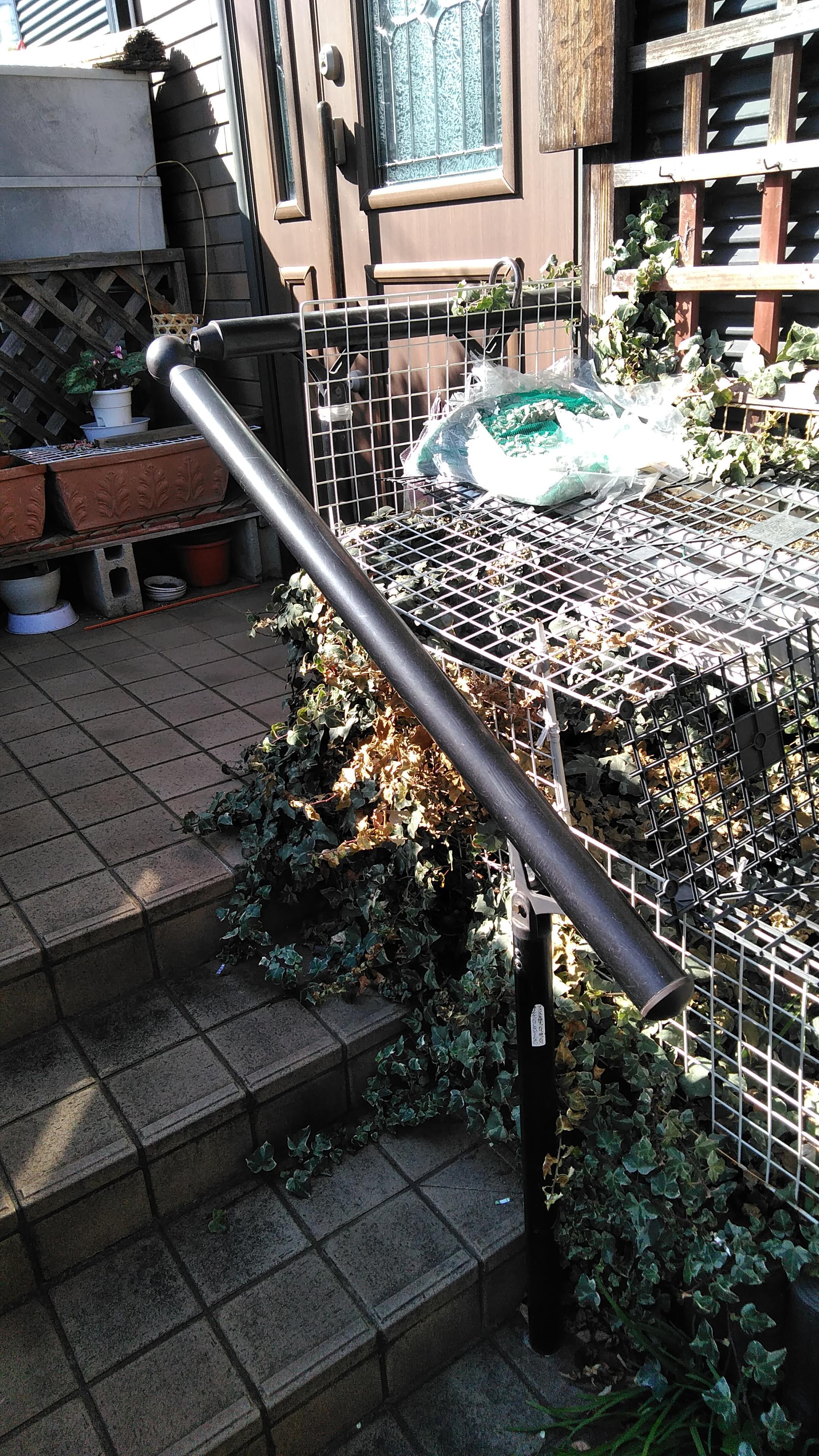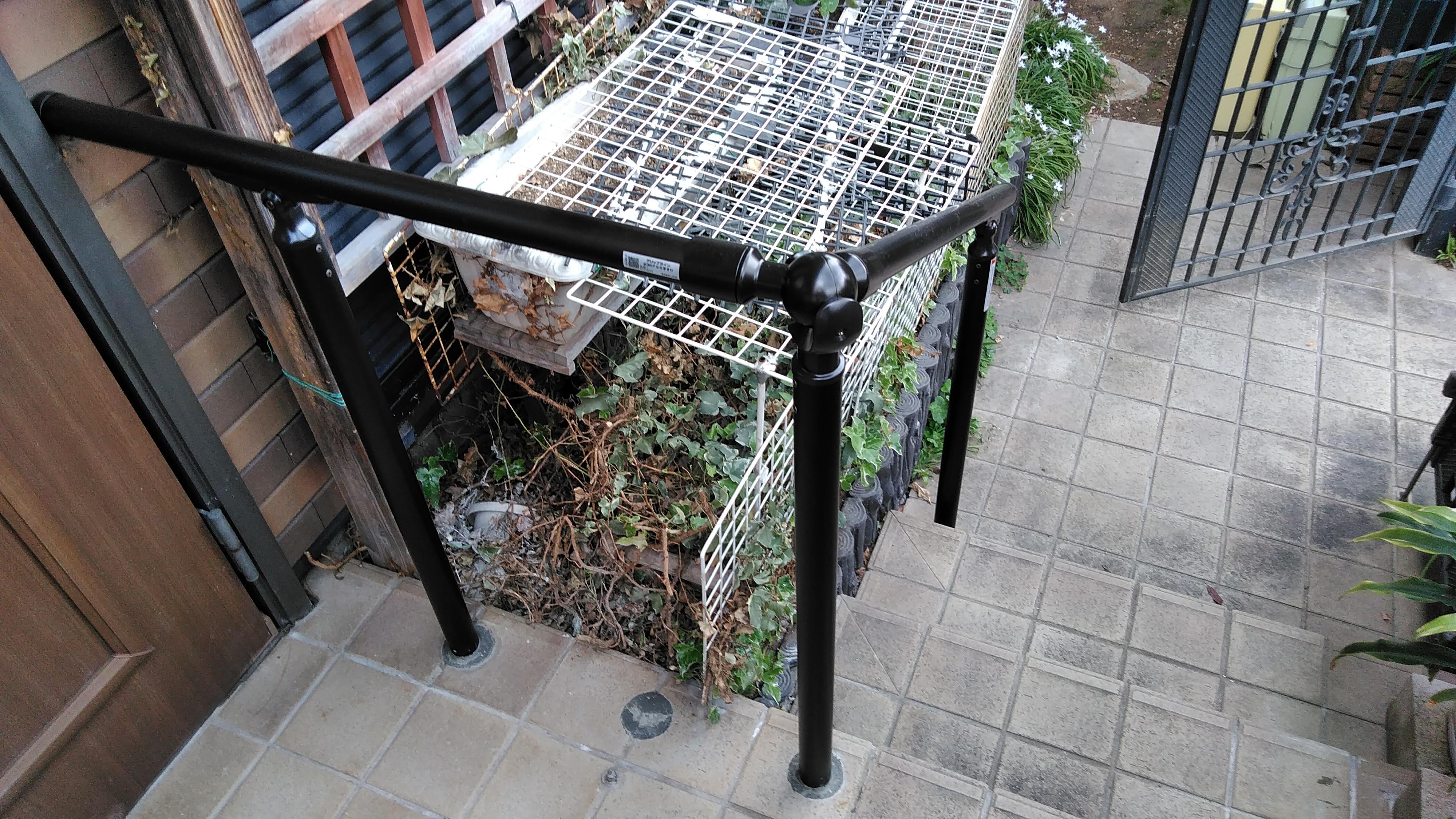 長年お使いになられていた手摺。強度が不安になりまして交換いたしました。LIXIL グリップライン をお勧めいたしまして施工致しました。手摺の素材はアルミタイプです。他に樹脂タイプもあります。握りも二種類あり、丸い握りの他に楕円形もあります。施工時間も2時間ほどで完了いたしました。