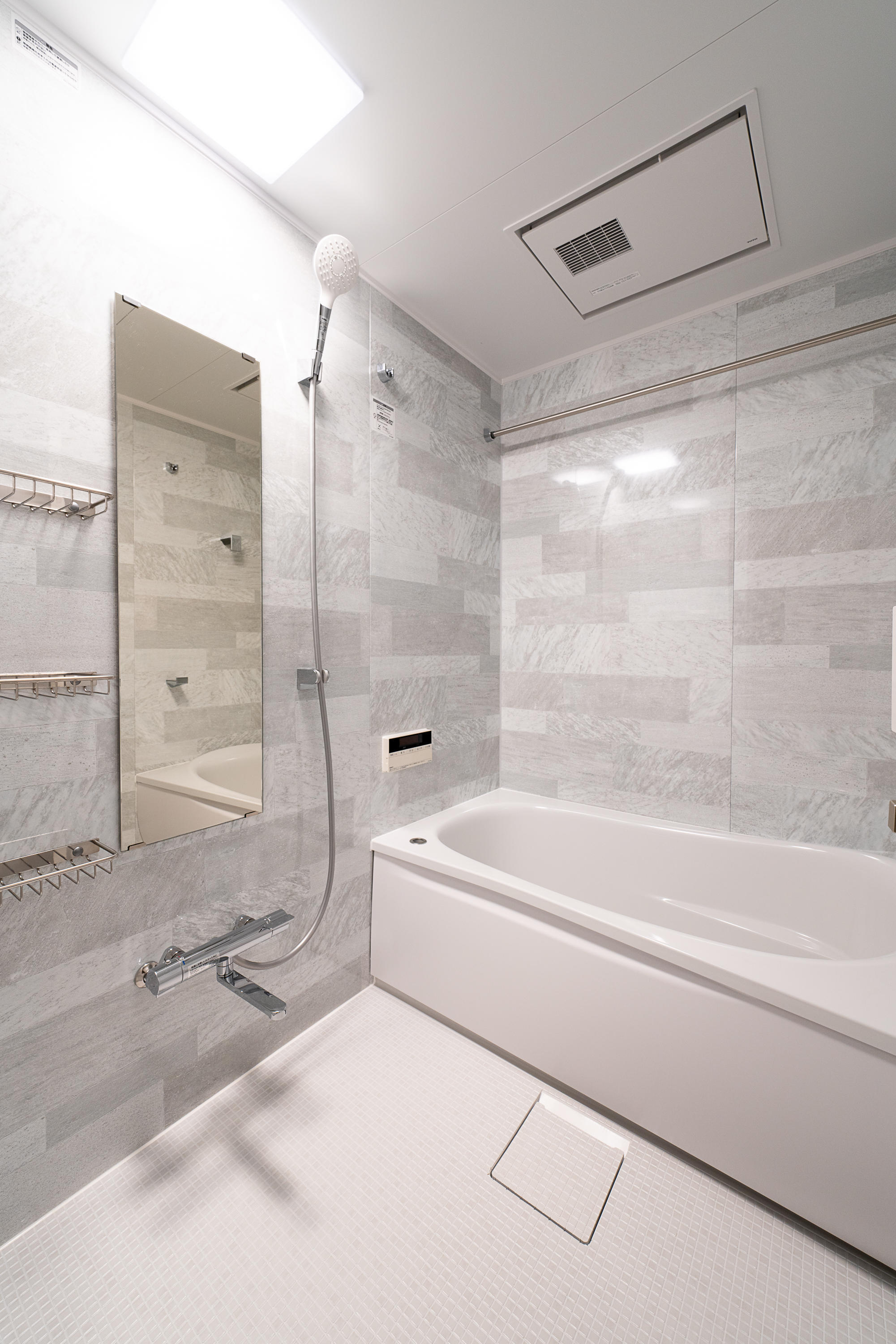 カウンターをなくすことで狭く感じがちな浴室が広く感じられます!またパネルを好みのものに変更することで、お客様の好みにあう空間へと仕上げました!
