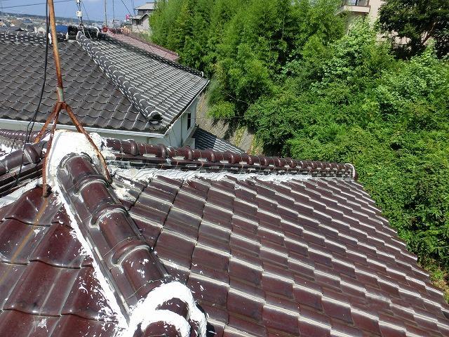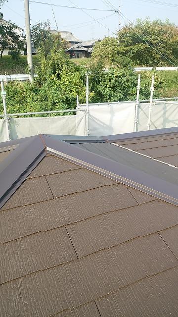 屋根の漆喰がぼろぼろとはがれ始めたので、屋根の葺き替えをさせていただきました。足場を設置するため、合わせて外壁の塗装もさせていただきました。