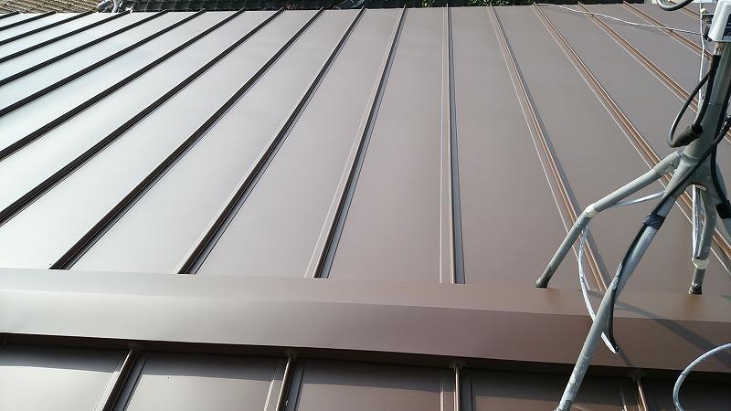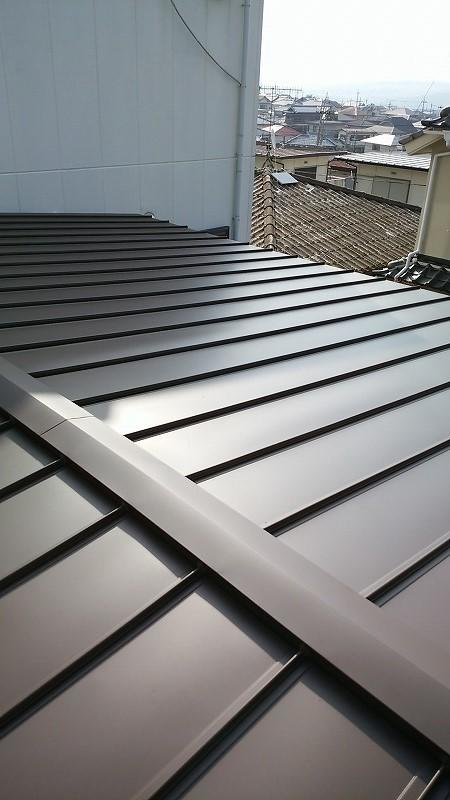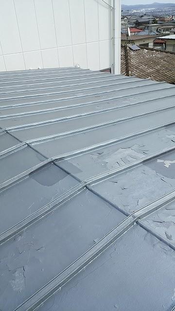 塗装がはがれ劣化していたガルバリウム鋼板の屋根でした。今の鋼板をそのままに、カバー工法にて重ね葺きを行いました。